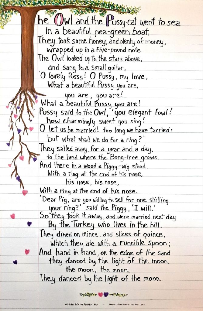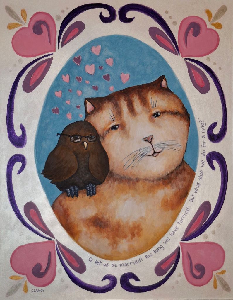 The Owl and The Pussycat art album by Clancy (print and ebook with the above artworks by Clancy): https://www.blurb.com/b/12431156-the-owl-and-the-pussycat-art-album