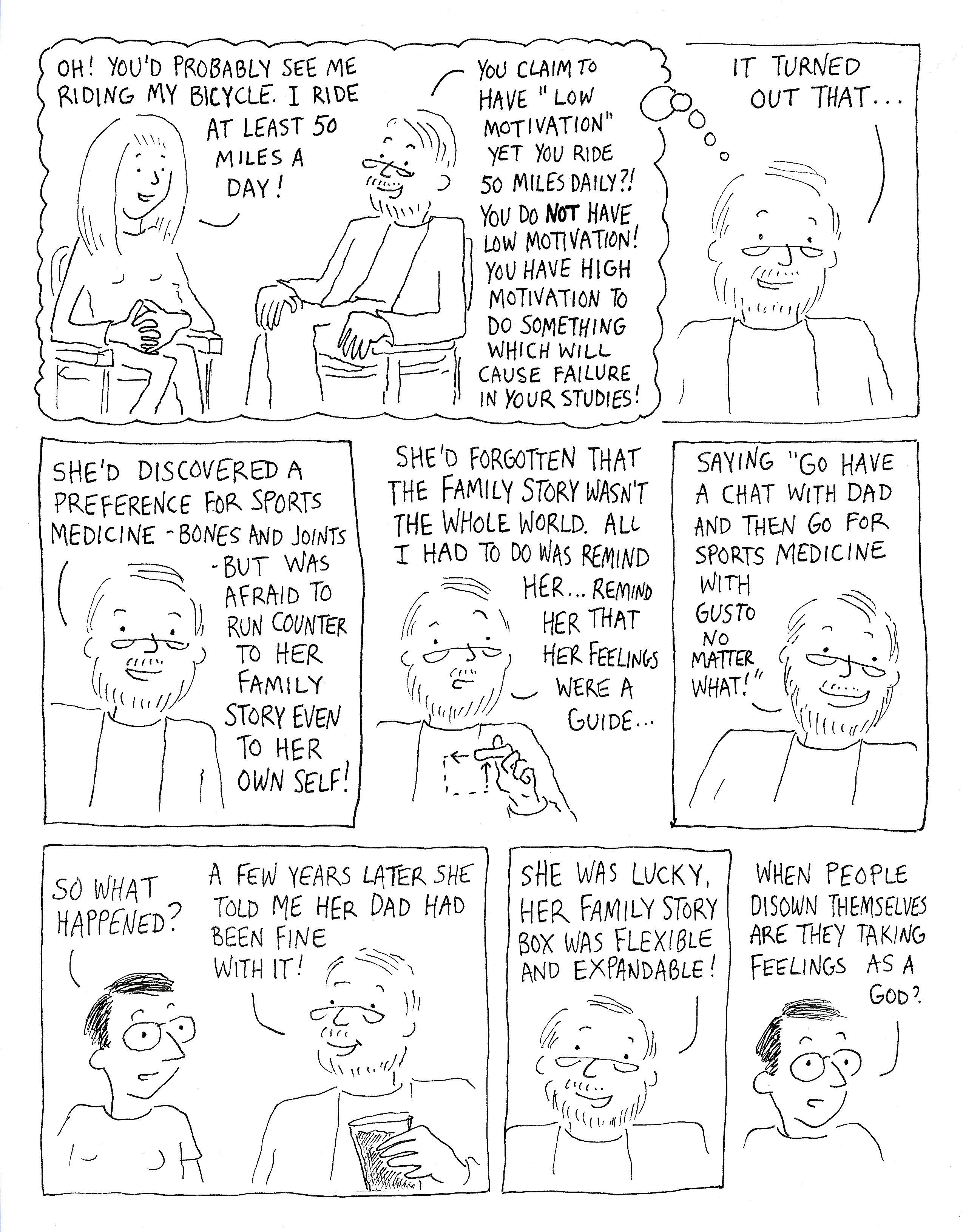 When I was in art school – and shortly after graduating – I tried wood sculpture, metal sculpture and pottery. I had a “story” of myself as a 3D sculptor. I soon noticed in each of those artistic disciplines that there were times where I was less than enthusiastic about my work. I didn’t “feel like working at it” and I was focusing on and treating this feeling of “I don’t wanna” as if it were a deity to be worshiped/obeyed/disobeyed. At the time I thought I had to “fix my attitude”, force myself to continue, and I struggled with it. I talked to Bob about this issue during one of our many lunches * and he said the quote mentioned above and told me something similar to the following story (which is excerpted from a book I’m now working on titled “The Artist and the Psychiatrist”):