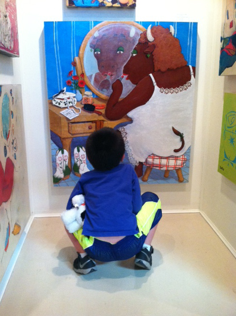 And yes, people do still look at the art without any ‘media aids’. Here’s a picture the gallery owner at Caplan Art Designs snapped and shared with me of a kid who spent a lot of time just looking at one of my artworks in the gallery.
