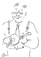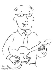 And here are links to past posts that show my sketching setup that I take with me to live music events – and here’s me working on the new artwork – and that post includes links to pictures of the developing sketch and me making the paper that I ended up using to make “Banjo Time”