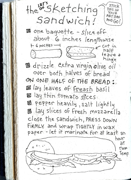 Here in this post is – irony intended – my sketch and notes about my sketching sandwich that I made in my sketchbook!