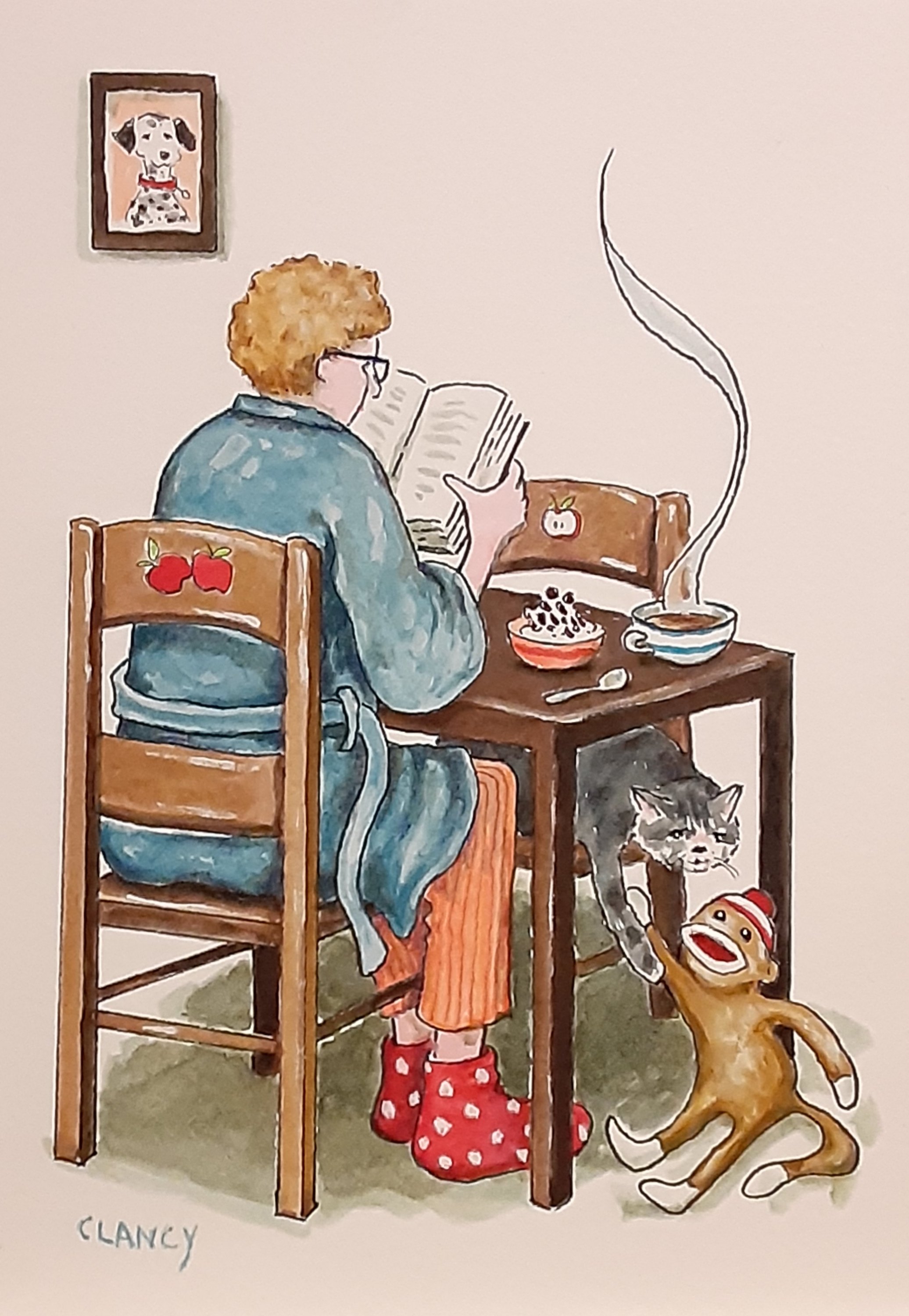 Thank you Audrey for noticing all the details! I’ve been trying out the writers technique of telling a story by describing a character and their backstory obliquely- about what they, drink, eat, wear, their furnishings etc.