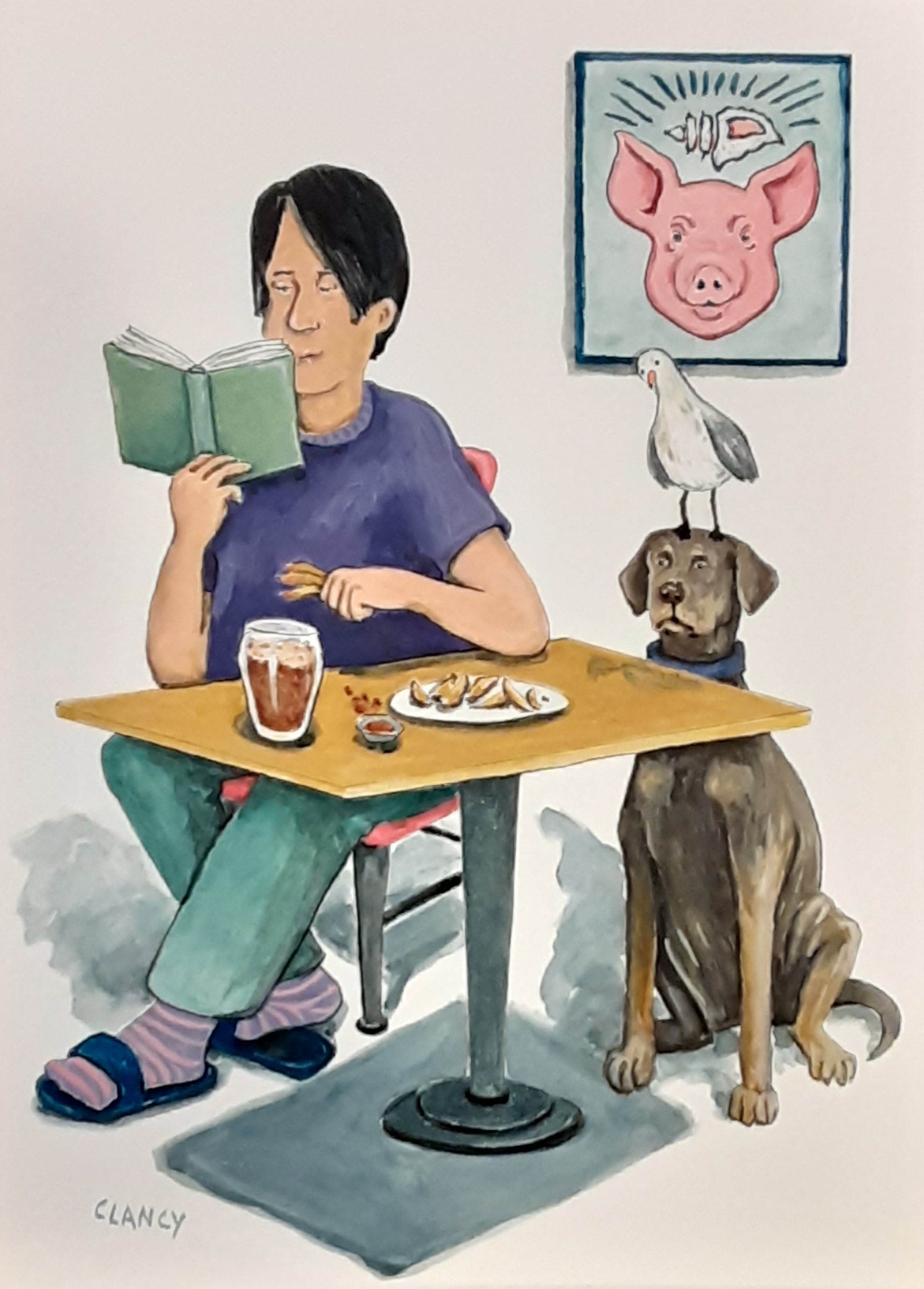 Here’s the painting I did with all of these thoughts – titled “Lord Of The Fries” – I’m sure you’ll see that I made artistic use of looking closely at my homecooked Jojo’s.