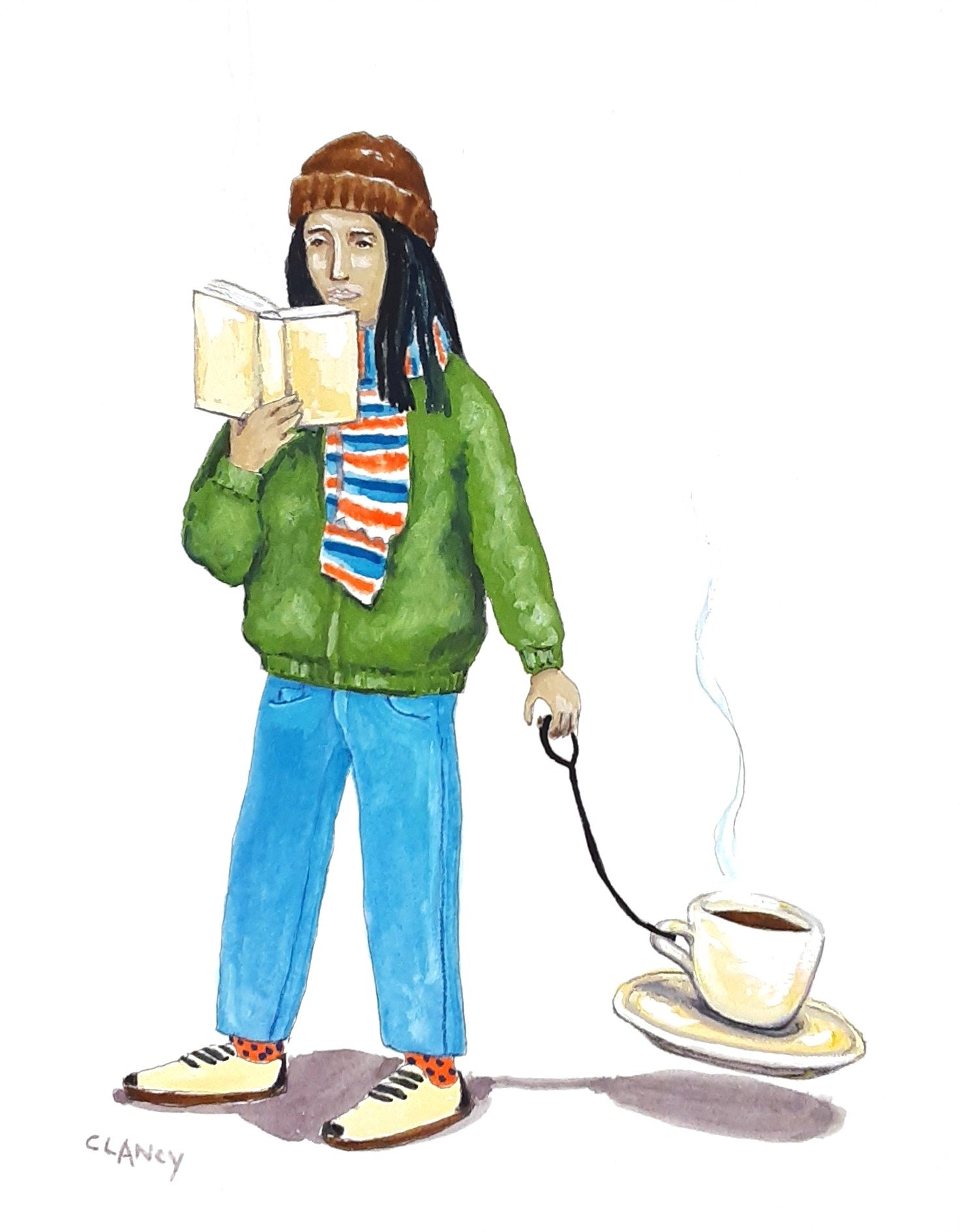 – It’s been a strange pandemic. Until recently I drew in my sketchbook from what I would see in the real world as I “ran around loose” in Vancouver and the Pacific Northwest. The pandemic altered that. As I stayed home, I began drawing people and animals more directly from my heart; from memory and imagination. This led to acknowledging that I deeply missed the local coffee shops, the winery, the pubs, the great the library, the bookstores, the museums, the gardens, the zoo… So, I began to experiment with how to adapt what it was that I enjoyed out in the world to this new “at home” life. This exhibit, and the artist books that accompany it, are my heart and mind’s adaption process.”
