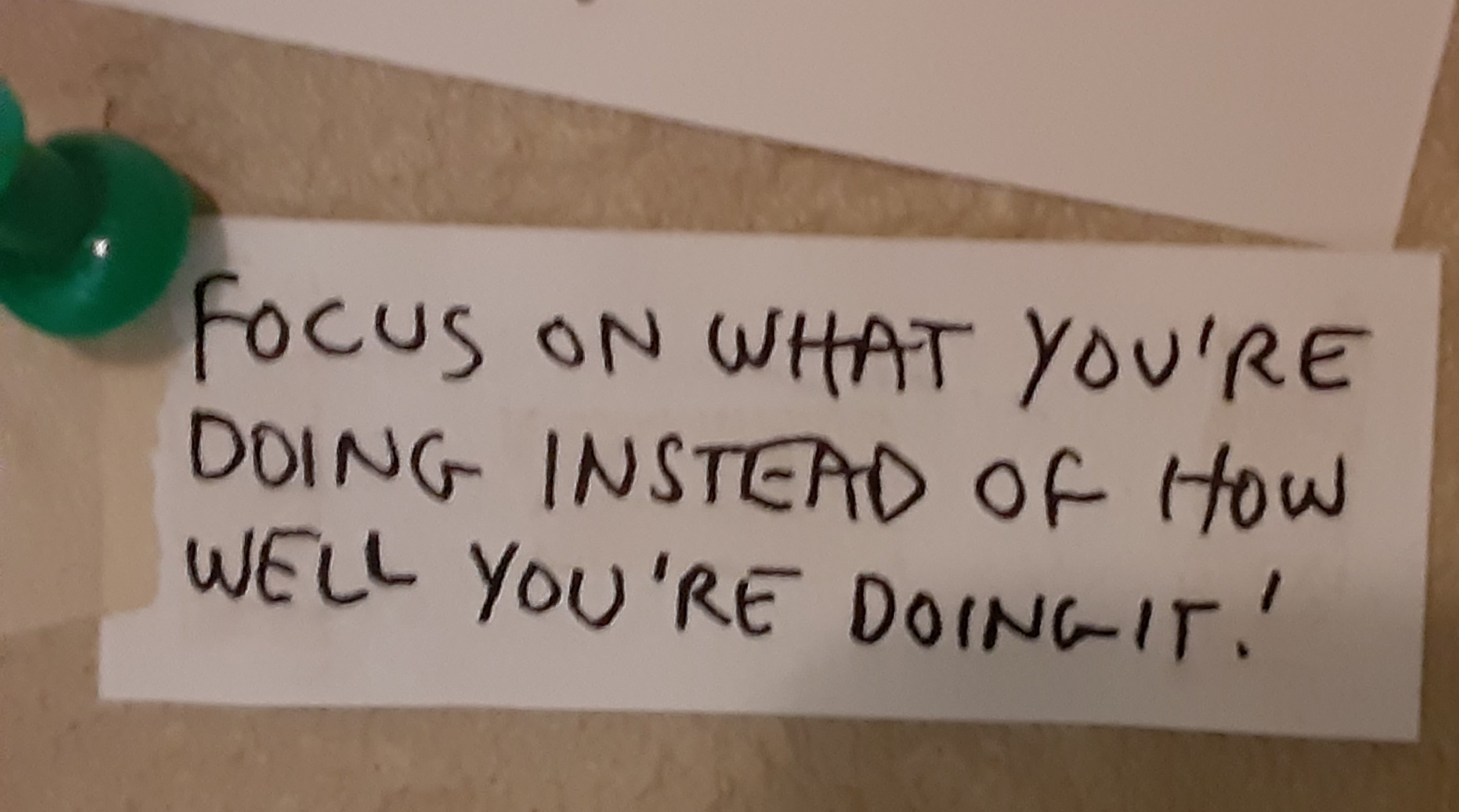 I think of the creative life as an Eco-system rather than an Ego-system – what’s important is participating, showing up and finding ways to keep things fun. I can’t stress enough the importance of playing and keeping things fun. That makes creativity over a long project sustainable. Here’s another saying I have thumbtacked to my studio wall.