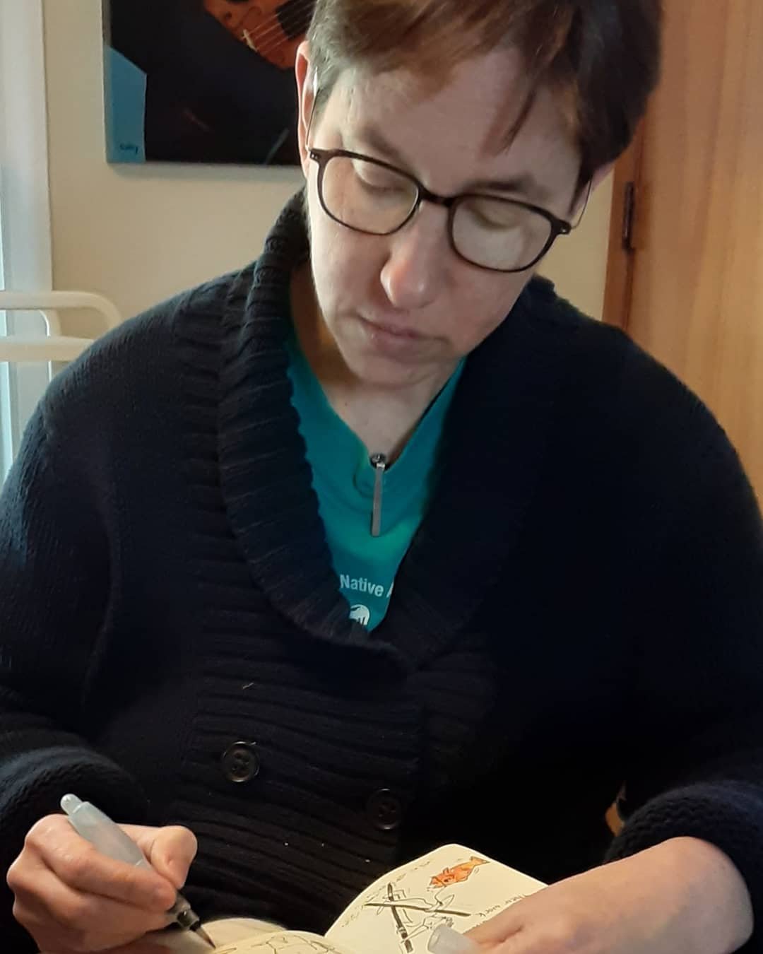 Here’s a picture of me working in a sketchbook