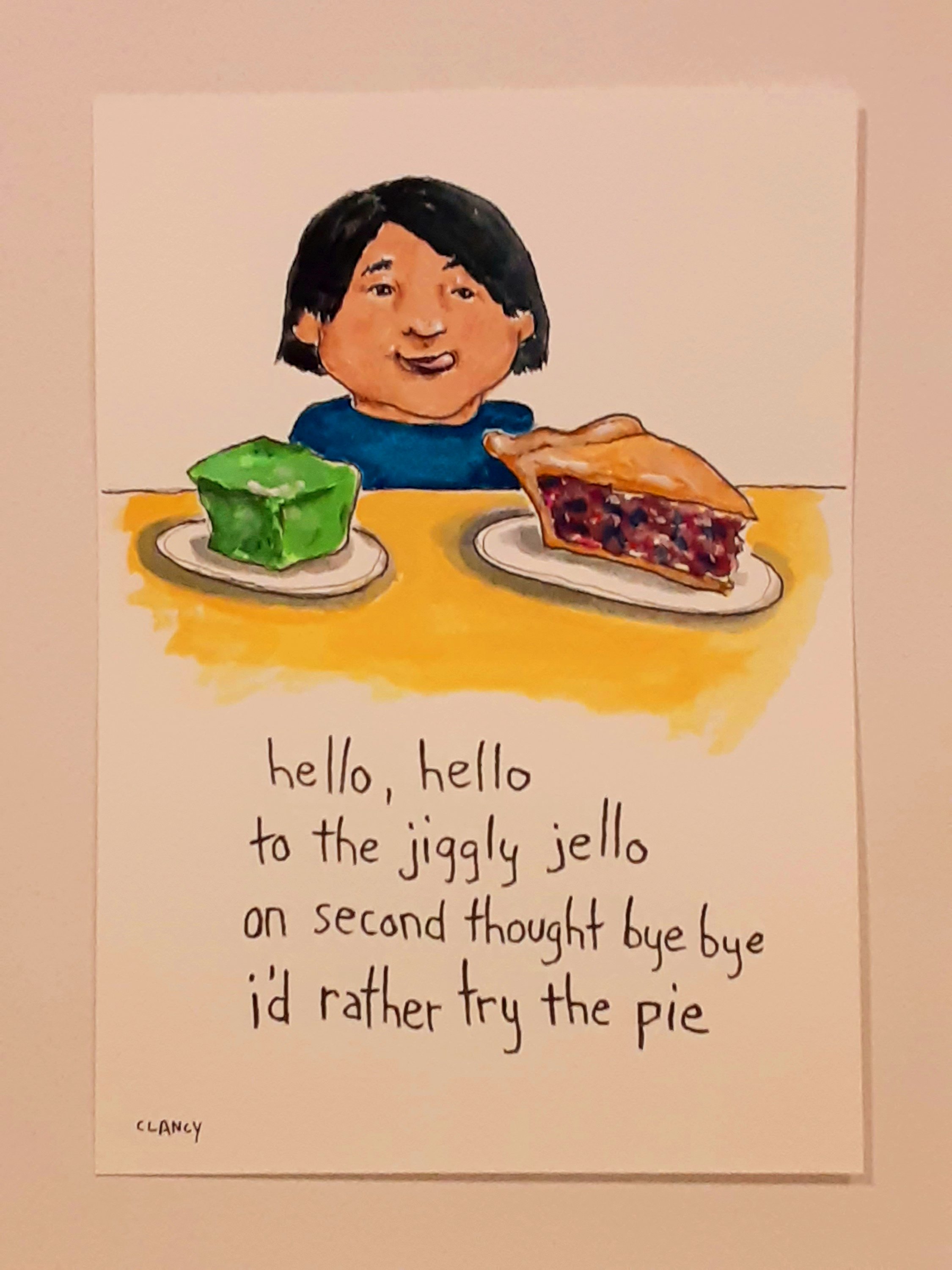 When it comes to writing my own poems I like to consult “The Book Of Forms” by Lewis Turco – pick a short poetry format, like limericks or couplets then think of a topic like “trying things” and play with related words and images. Some poems turn out okay, others don’t…the key thing, I think, is the willingness to write badly and trust that I’ll survive. So far that’s been true. And now after several years of regularly writing poems in my poetry sketchbook I’m able to reread it and find a few poems that are fun to illustrate and potential material for a new artist book.