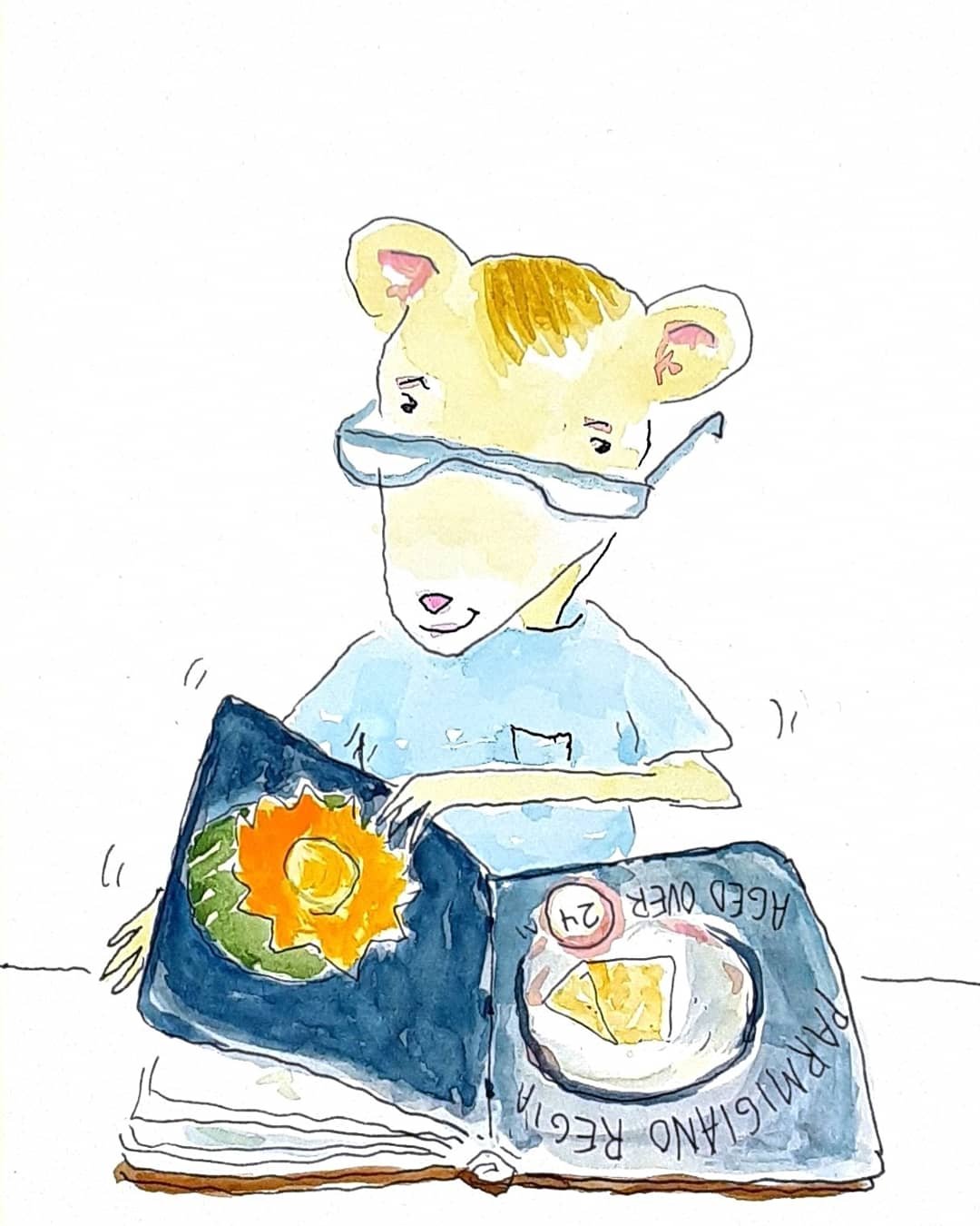 Anyway, there’s a new artist book I’ve done for children called “B Mouse Reads A Book”. In it you can see my original ink and gouache artwork, and how the art media is on folded paper in this video on my YouTube channel. Because this book was meant to be handled in a gallery I used a spray fix varnish to make sure the gouache wouldn’t smear or run.