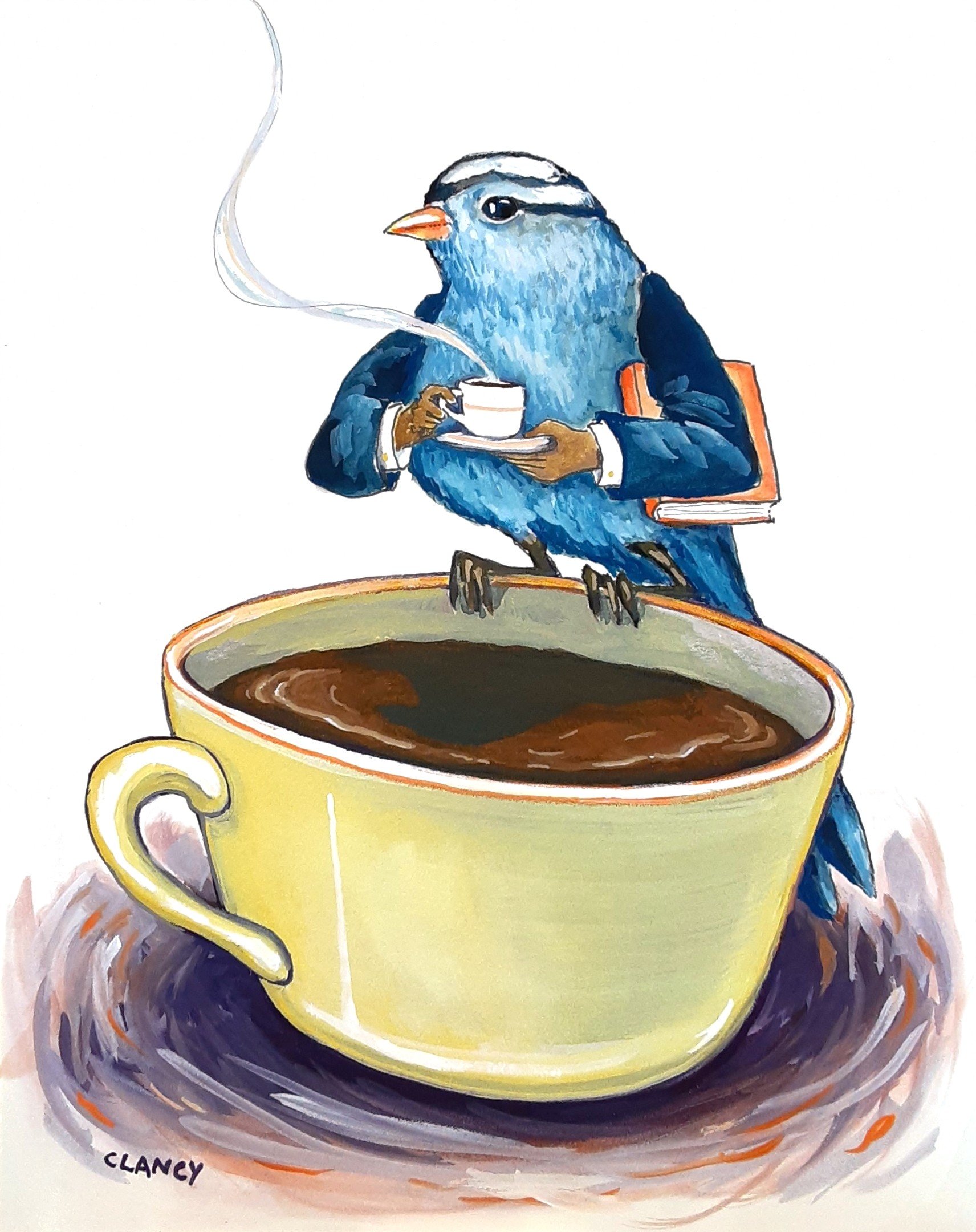Perhaps you’re noticing some common themes in my work: books, beverages, music and funky socks. All various comforts that can be enjoyed at home.