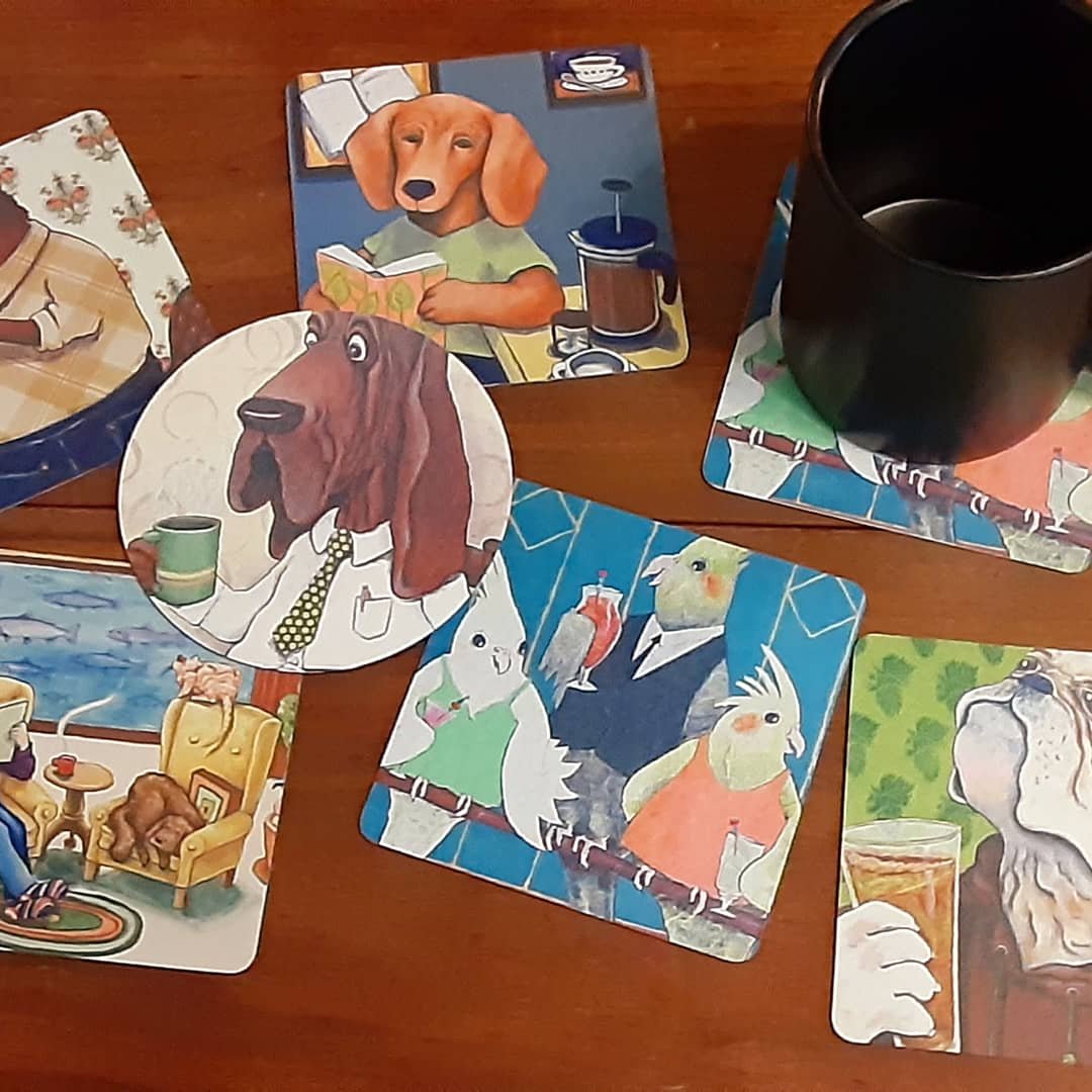 When reading books or sketching I like to have a coaster or Mug Mats as I call them under my cup so that my beverages don’t moisten a table or a book. Consequently my sketching practice lately has run to making coasters too… here’s a collection of my Mug Mat designs https://www.zazzle.com/collections/mug_mats-119756908126091756