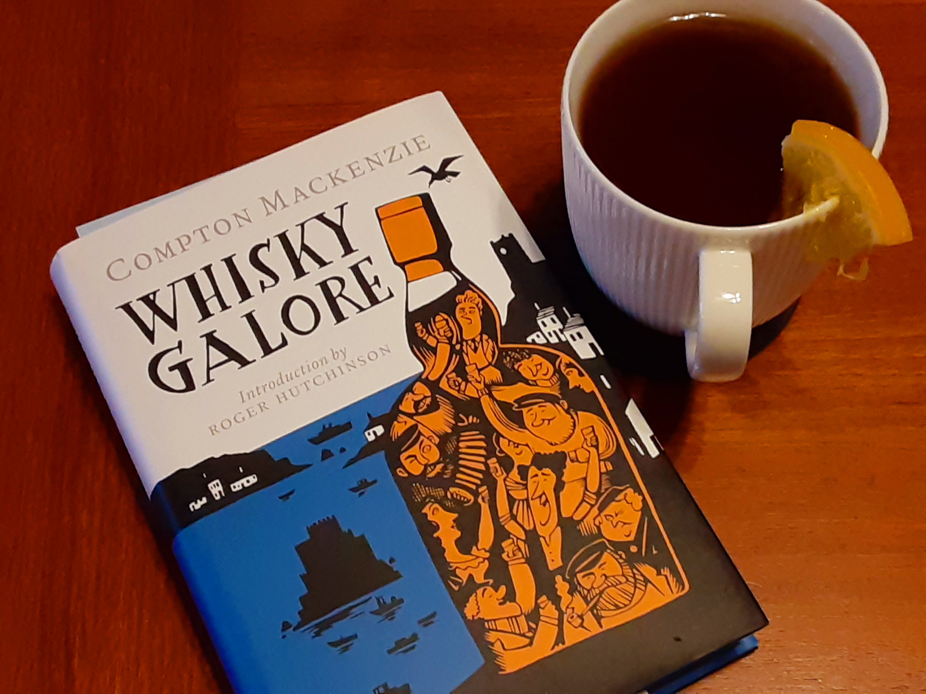 Whiskey Galore by Compton Mackenzie was a surprise in the mail gift from my spouse who knew I had wanted my own copy. I’d read the library copy several times and had listed this title as a “book to cheer up by”. This book paired well with English Breakfast tea blend and candied orange slices. And occasionally had a shot of whiskey on the side.