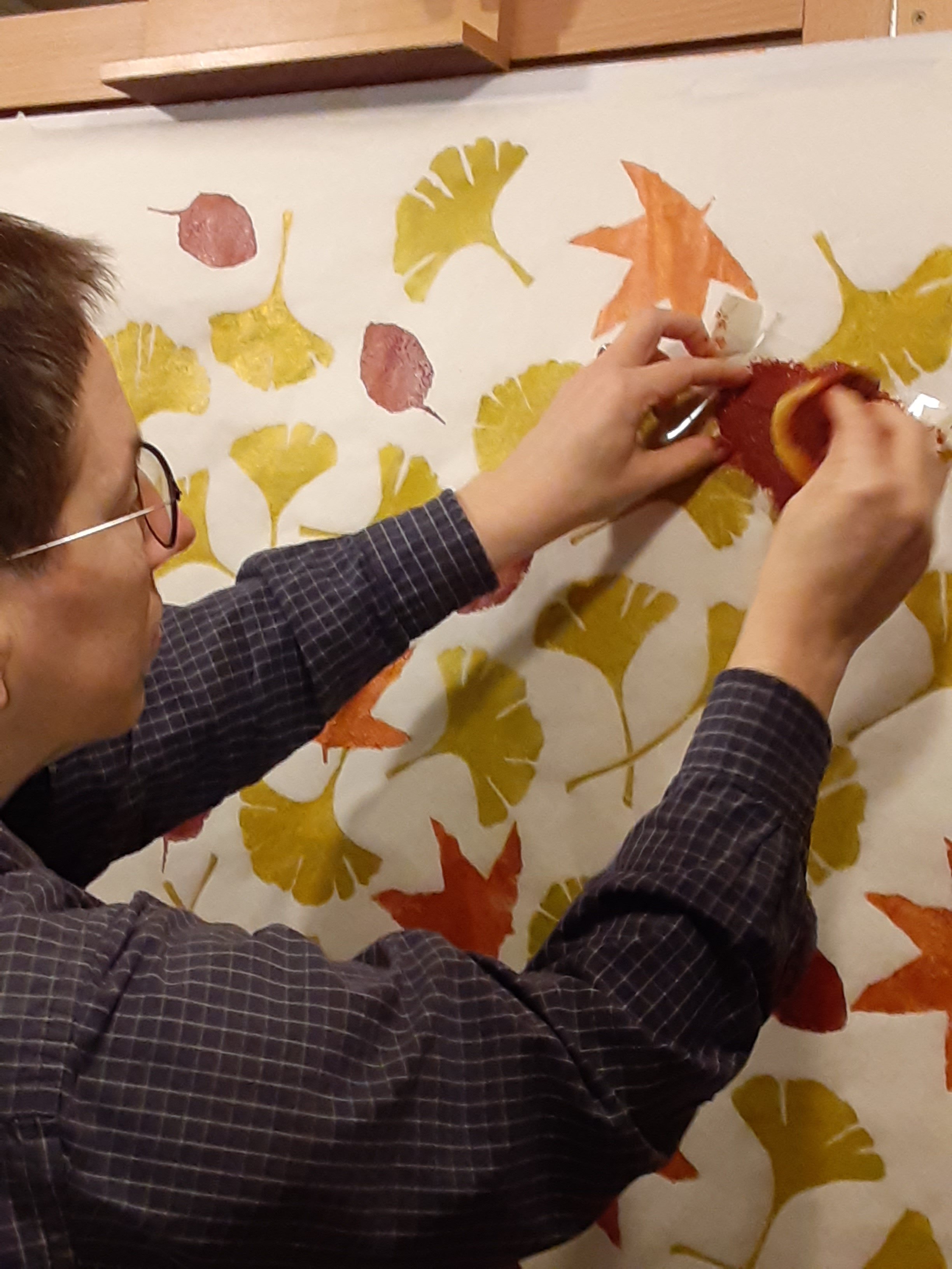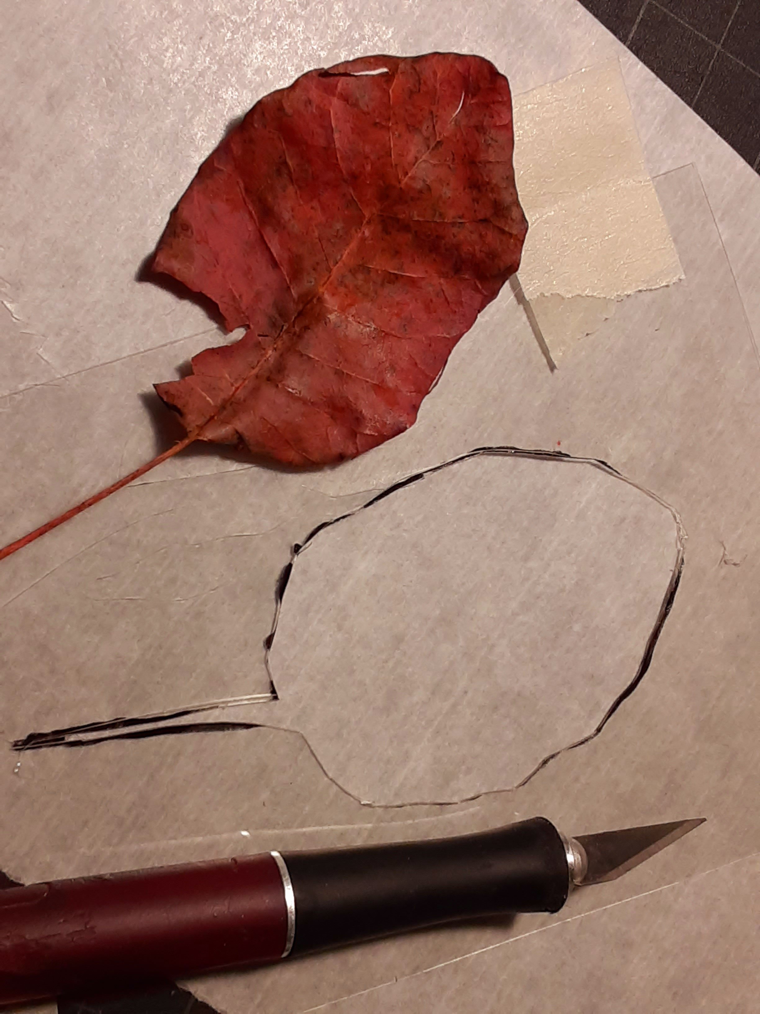 I love the variety of leaf shapes here! I recognize ginkgo, maple, and birch, but not the dark red leaf. Your stencil-making process is interesting too.
