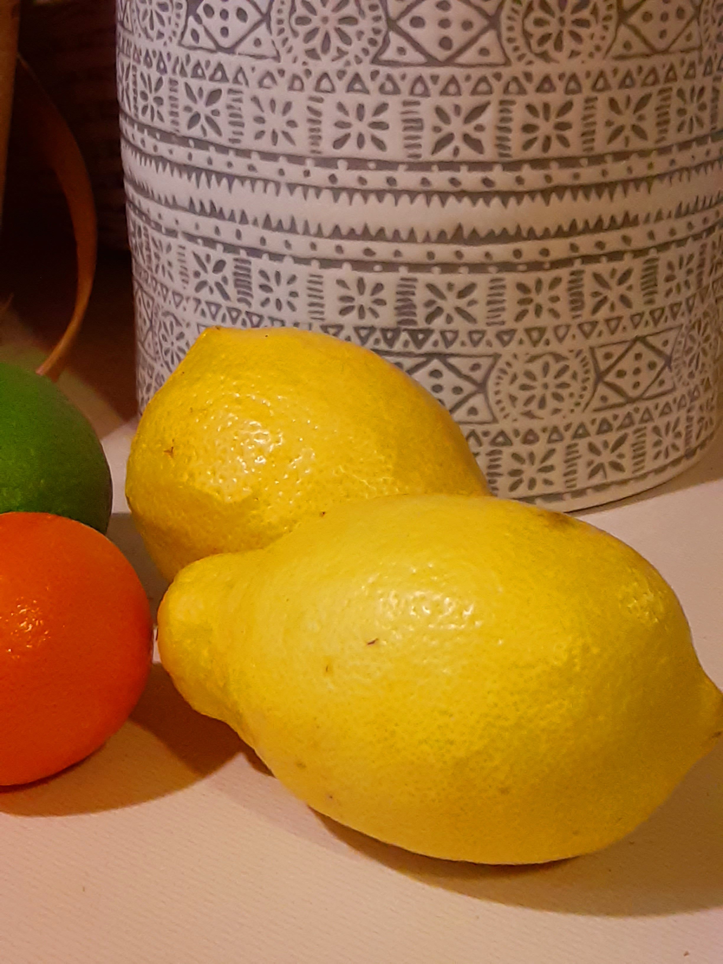 I’m amazed at how easy it can be to change one’s perception and be inspired. For example I took these yellow lemons and set them next to a grey and cream cookie jar. Suddenly I have a color scheme I hadn’t thought of before.
