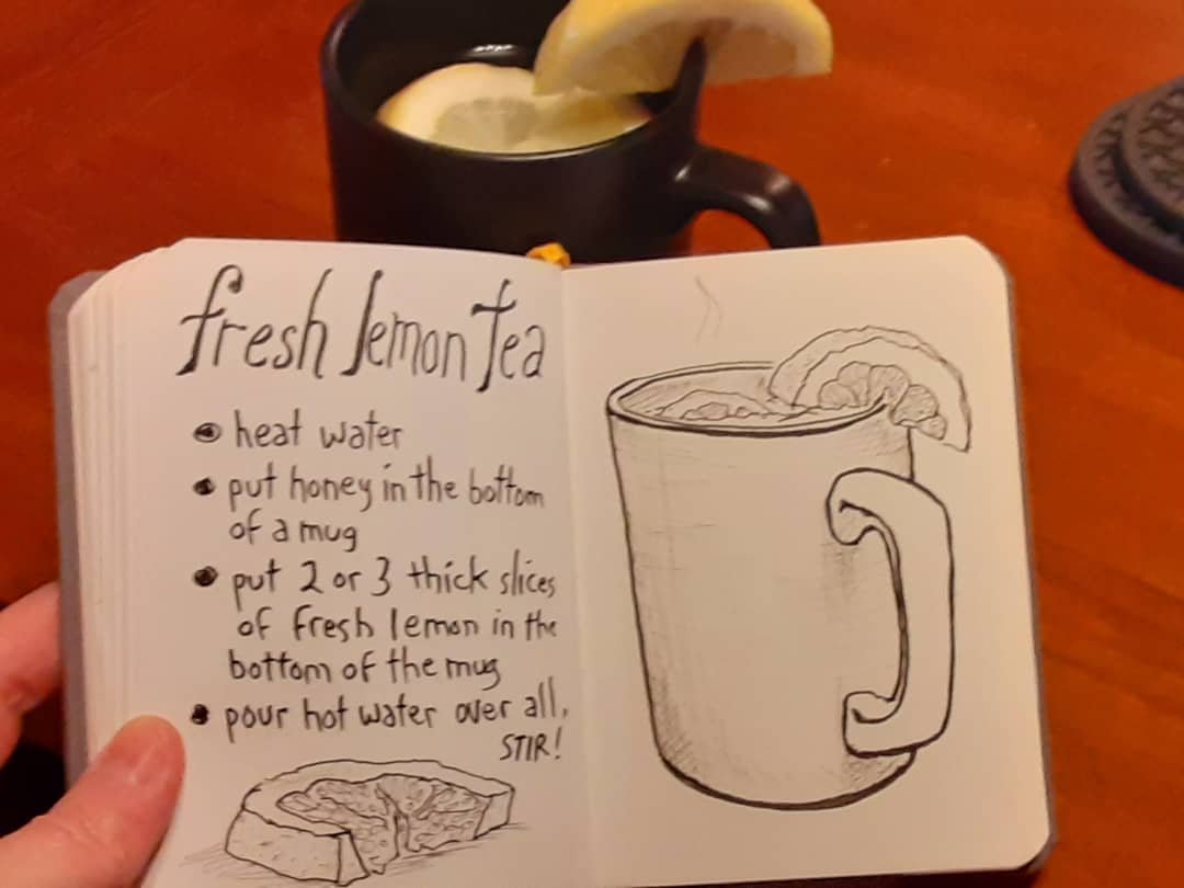 Yes, much of my artistic inspiration comes from my personal life. Below is one of my favorite hot beverages. I wrote the recipe in my sketchbook. A sketchbook is where I do a lot of my sifting through my thoughts and making links.