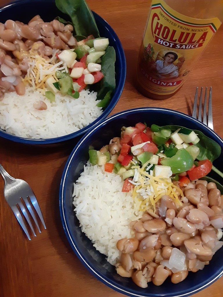[…] working we’ve had lots of beans and rice for our lunches. I have a keeper of my precooked magic beans in the fridge so I toss a scoop or two in on top of the rice in my “push here dummy” […]