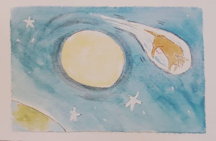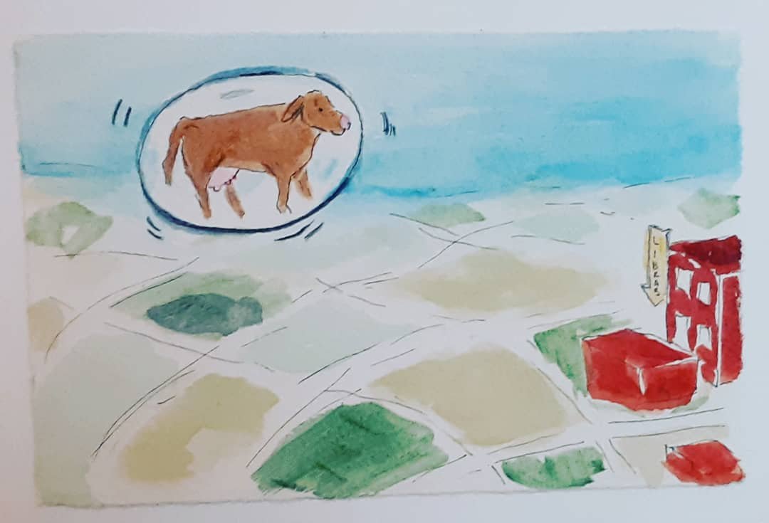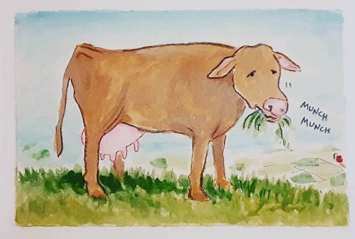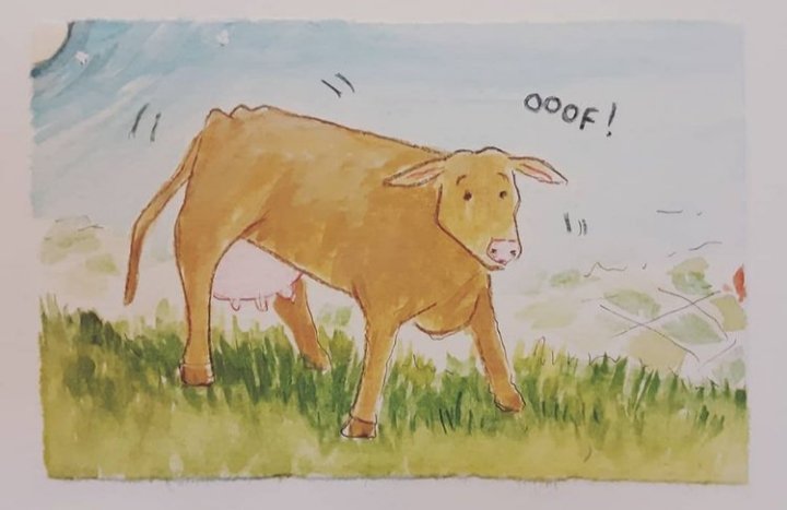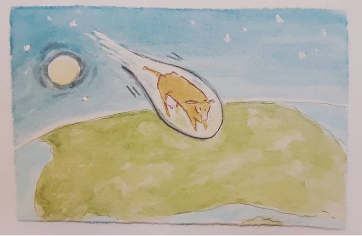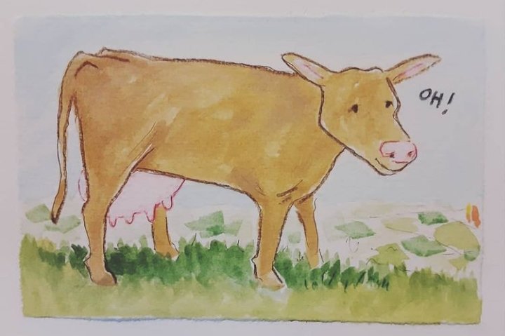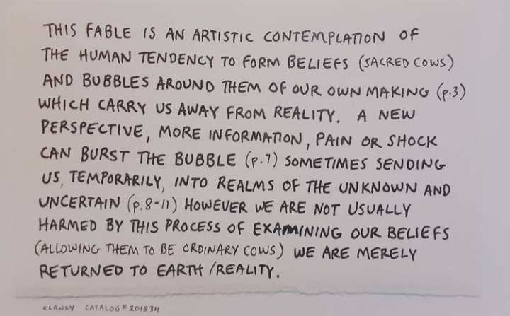 Thus I’ve been pondering just how it is that Mother Goose’s cow went over the moon. And our human habit of having sacred cows… beliefs that take us into the stratosphere away from reality. Consequently there’s a new wordless book in progress on my easel.