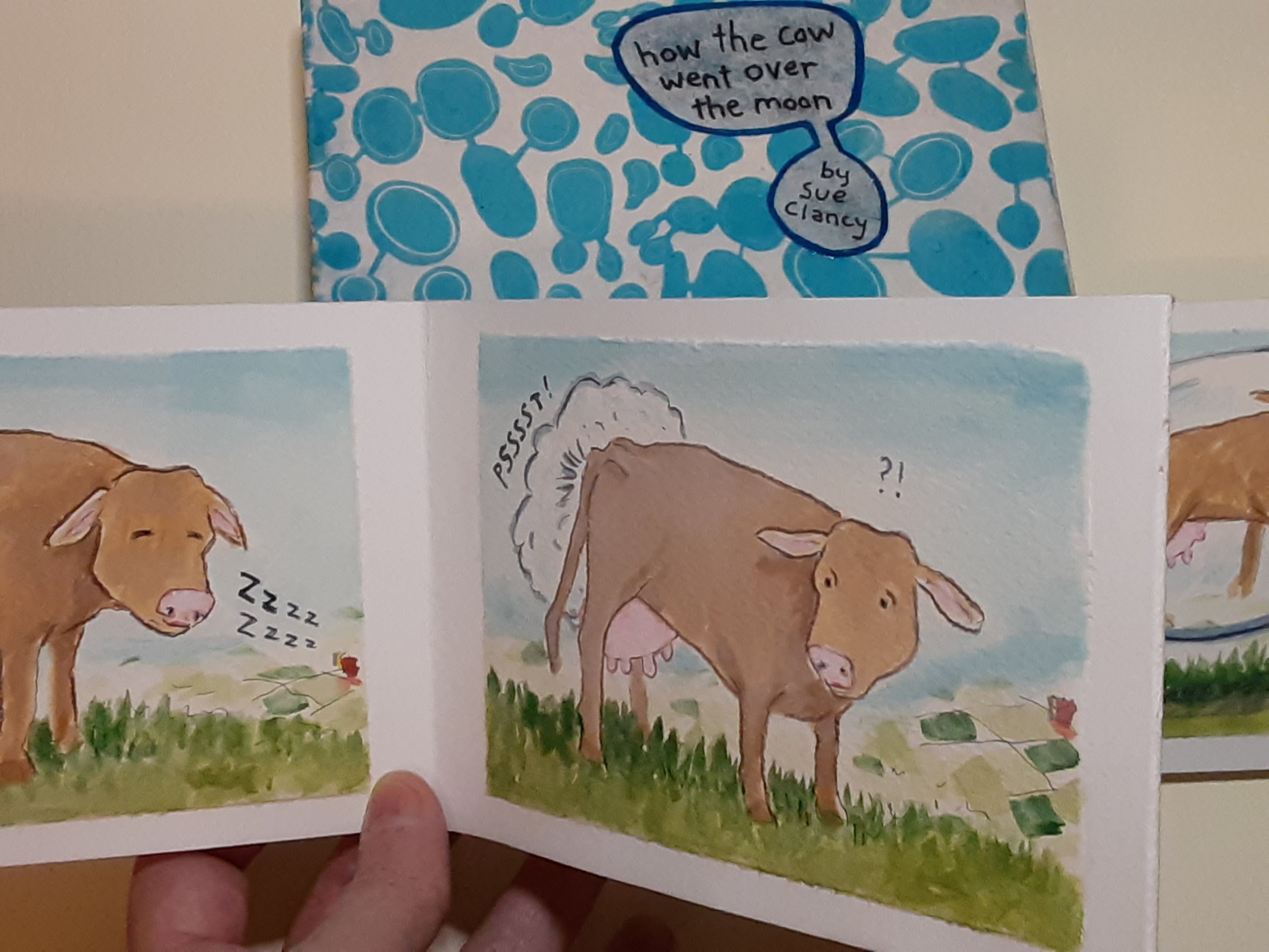 As I mentioned earlier I’ve been working simultaneously on the book layout and design for the printed version of “How the cow went over the moon” … and I’m using visual elements of the original artist books … here’s a look. 👇