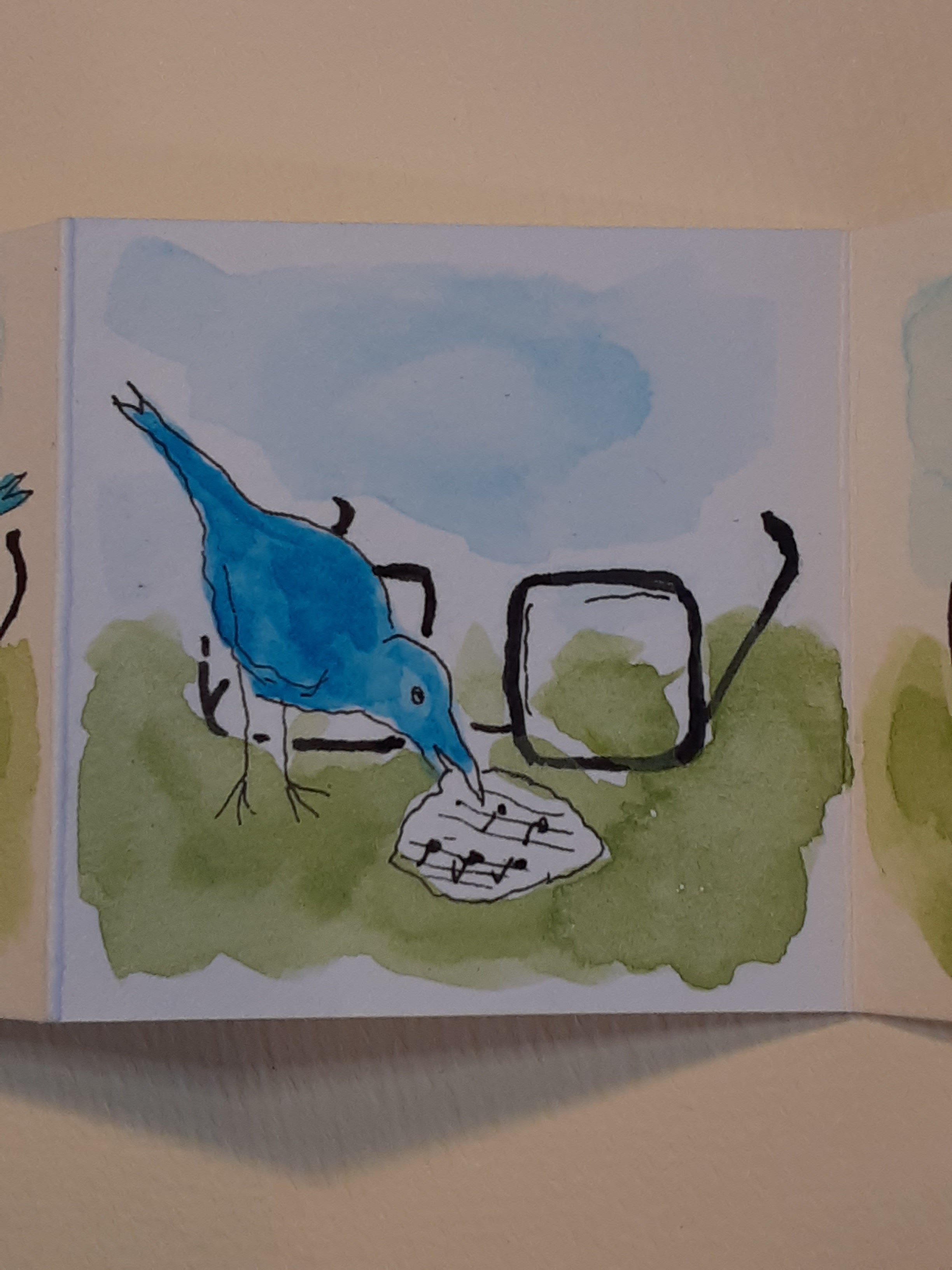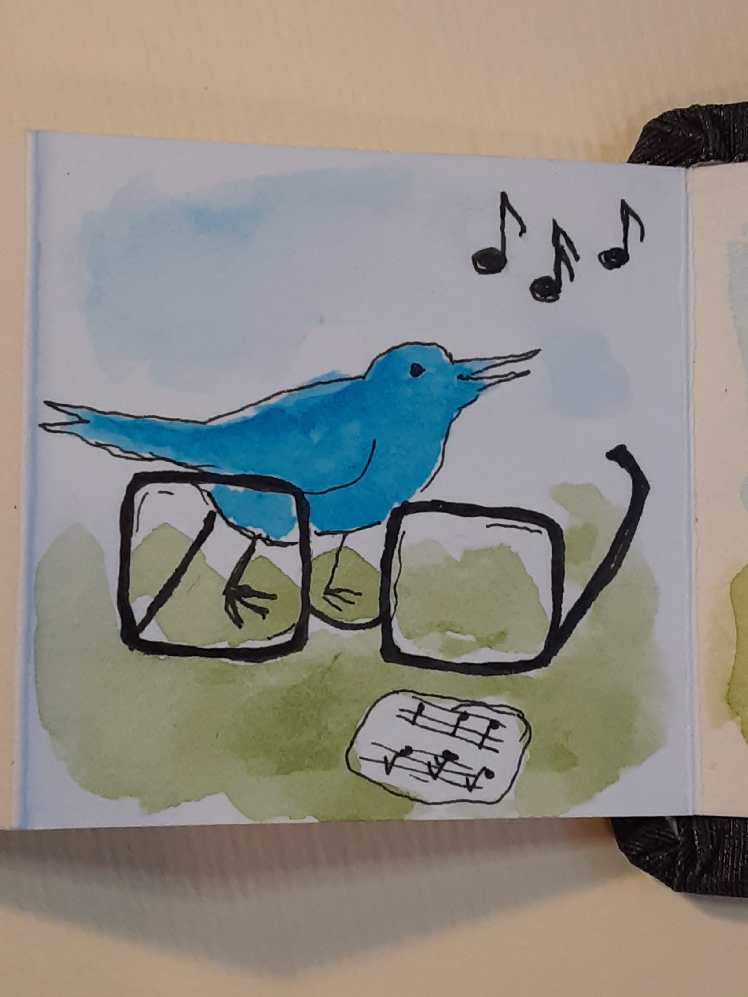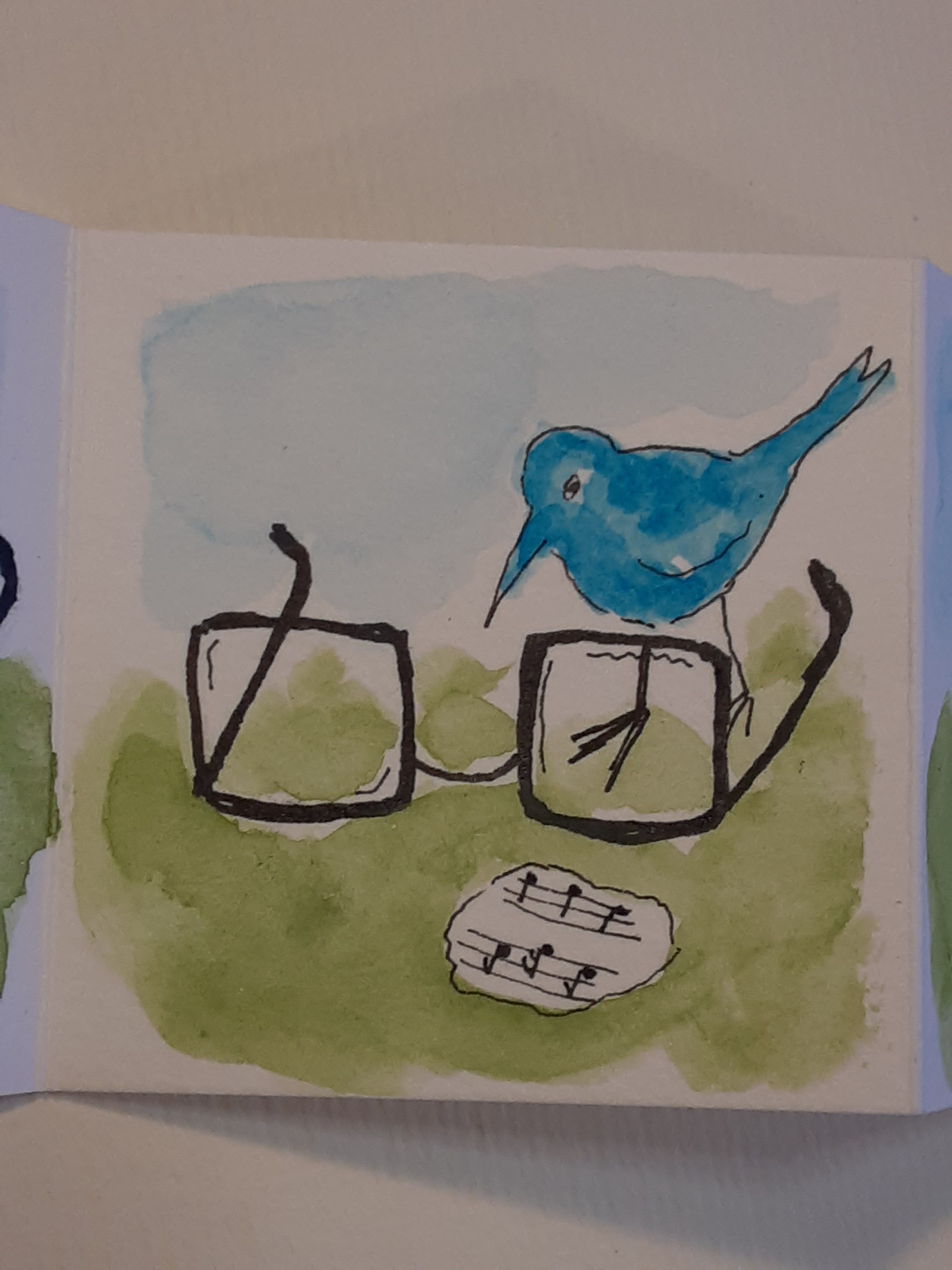 Oh my goodness, it took me a whole week to get to this post, and I’m so glad I saved it. What wonderful and fun projects. And I love the rabbit and dog approved – not to mention the Clancy wall – photos of your artworks reaching their destinations. The tiny notes poem is one of the most adorable things I’ve seen in a long time. I love the concept and the bird peeking through the glasses to sing the score is simply wonderful. Such a cool program to have a color-along for kids. A post that brought me even more smiles than you usually do, Sue… and that’s saying something!! 🙂