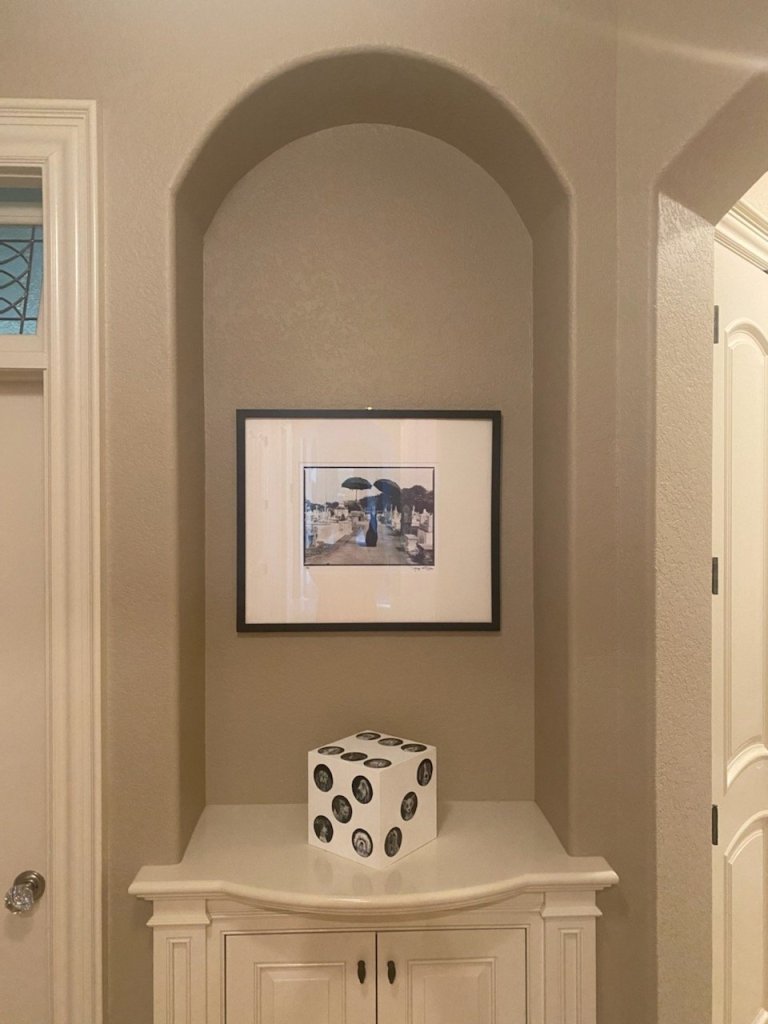 This week the Caplan Art Designs Gallery sent photos of my 3d box project “All the Chances” in it’s new space! And look, the client’s pet rabbit approved!!
