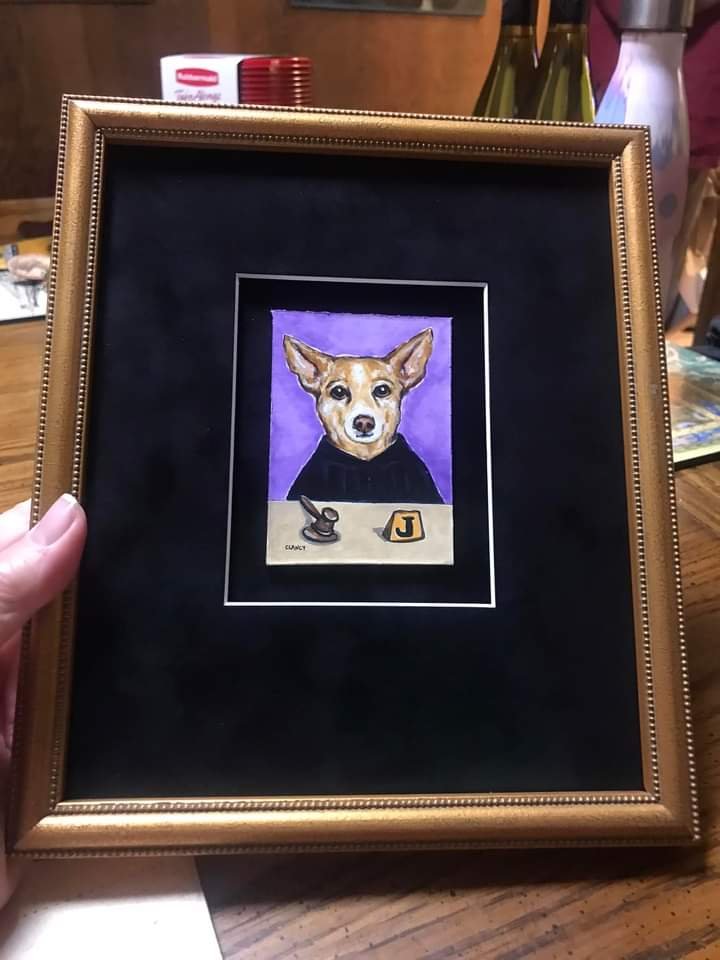 And someone else sent me photos of their dog approving the dog portrait I painted and the way the Aurora Gallery framed the portrait! So glad their dog approved!!