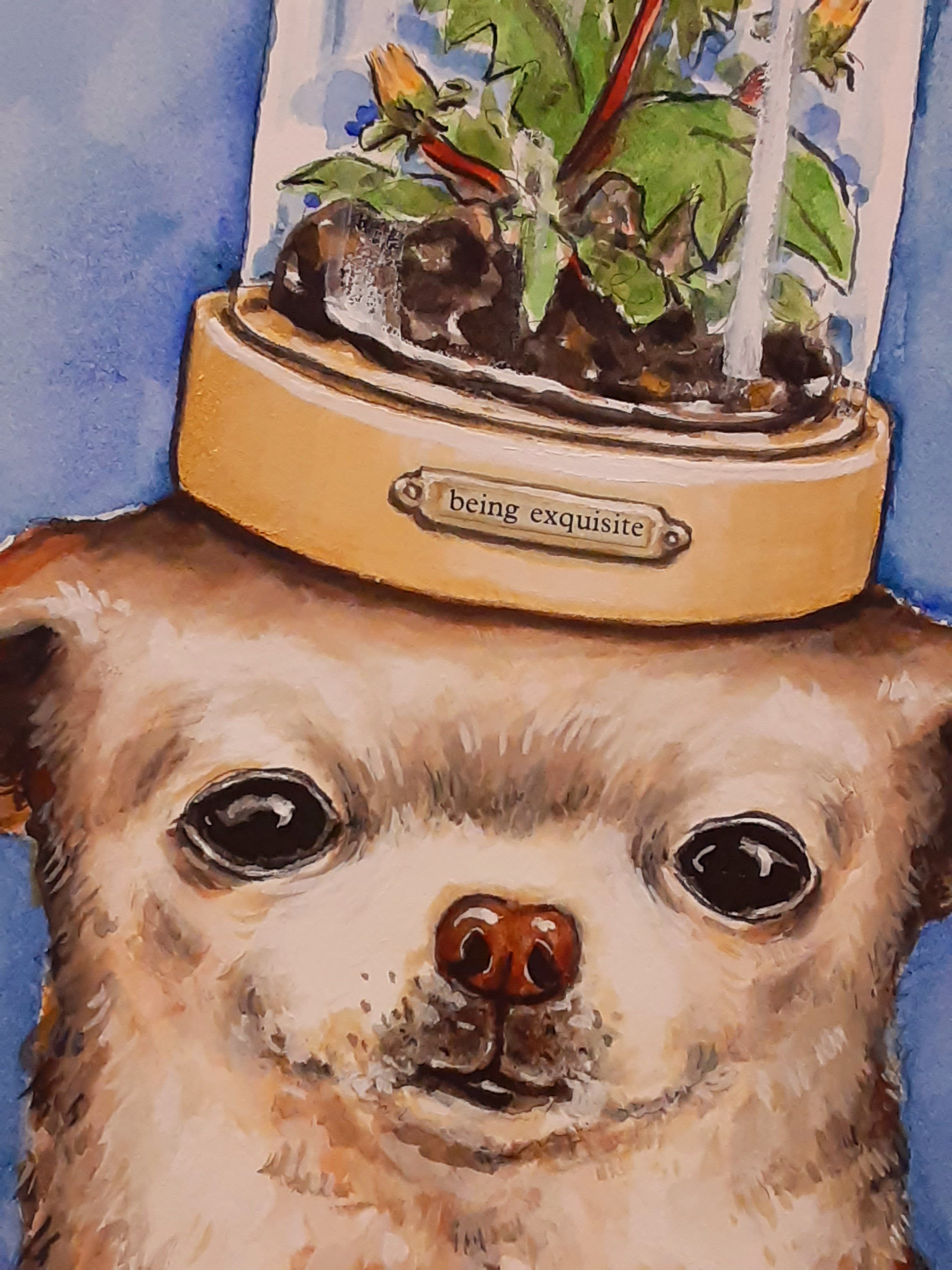Here’s the completed dog portrait titled “Being exquisite”. Like the dog portrait in my last post this new one is 8 x 10 inches and uses that nifty new brush technique (last post)! I’m having such fun with all of these tiny details!