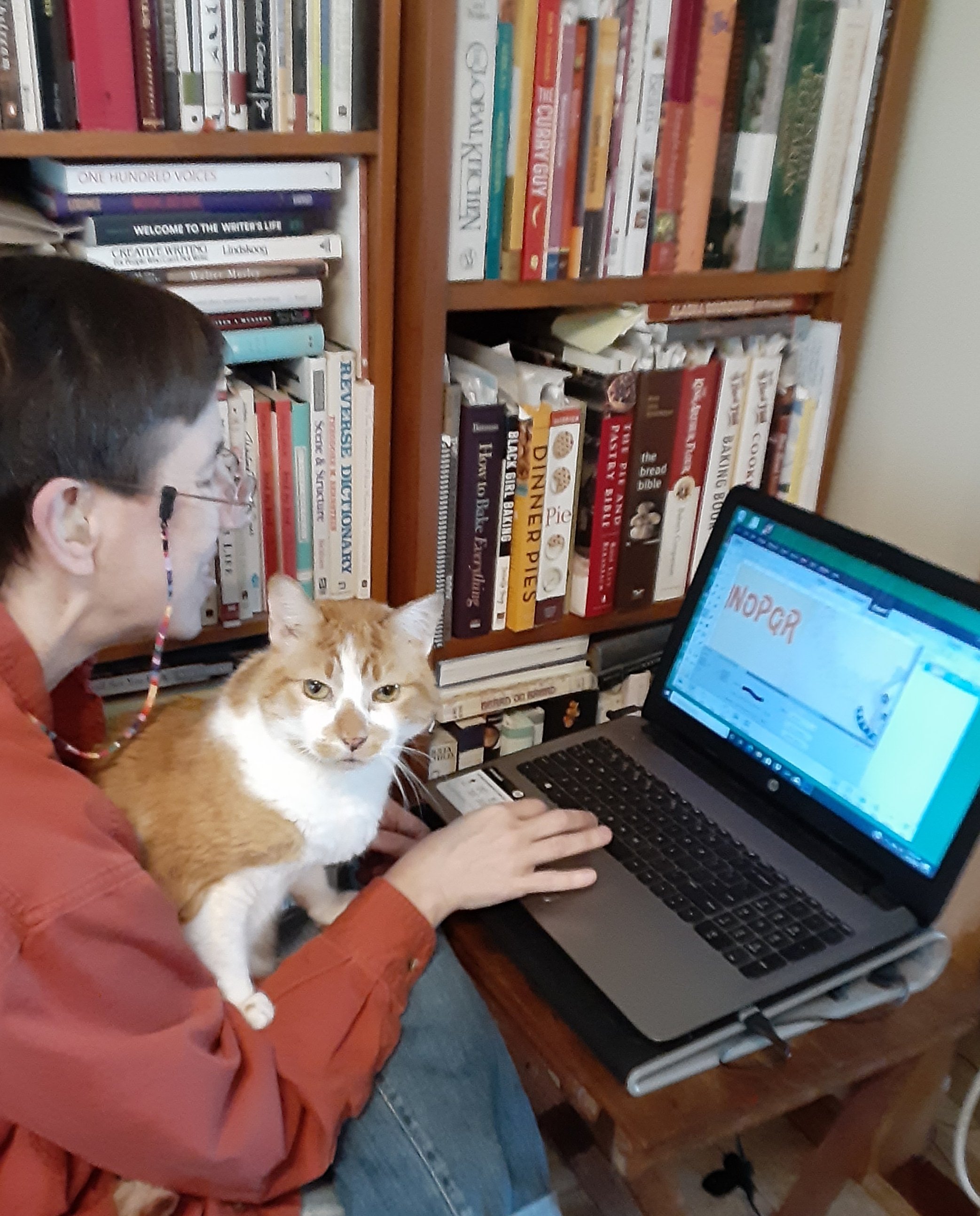 I took photos of the Ralphapet Cat artwork with my big camera (a better camera than a phone camera) and then my studio supervisor cat, Hawkeye, helped me do the graphic design hocus pocus in order to make art prints.