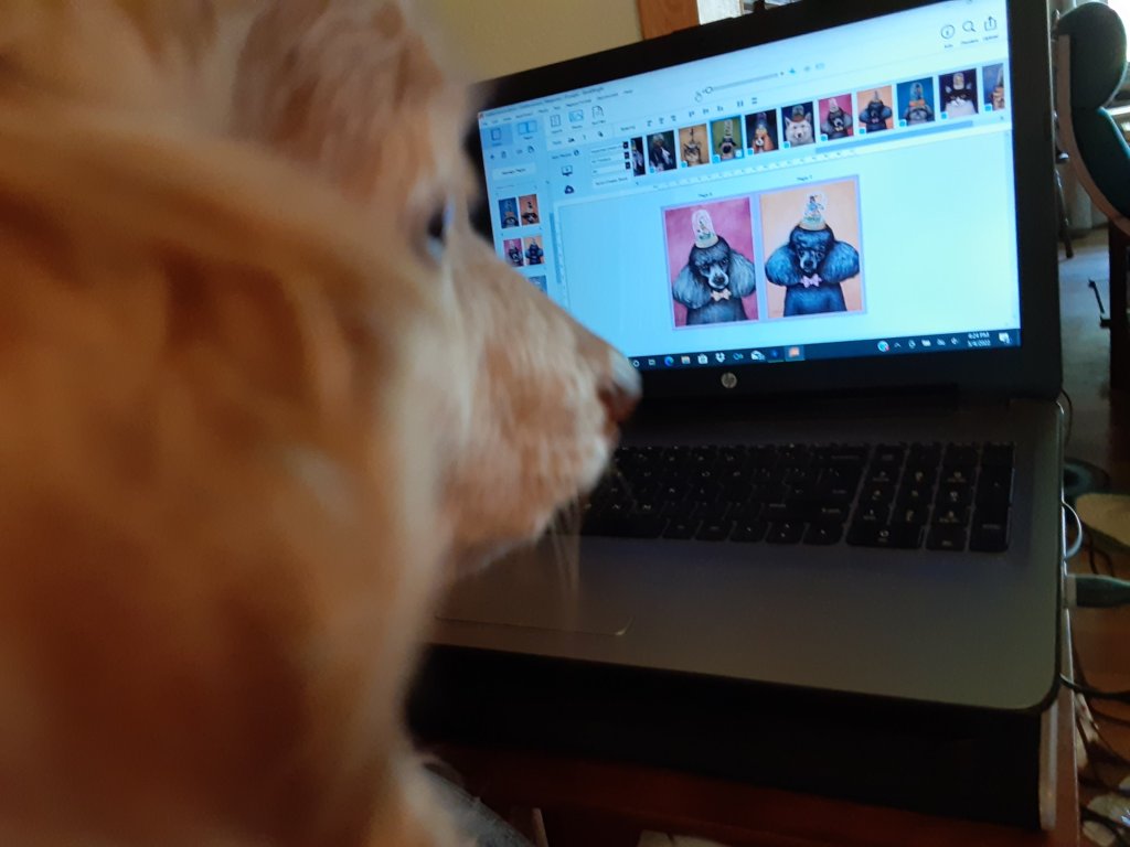 And I get comforts in doing the work of my creative projects. Here’s my art studio dachshund supervisor helping me with the book design and layout for my Odditerrarium exhibit book.
