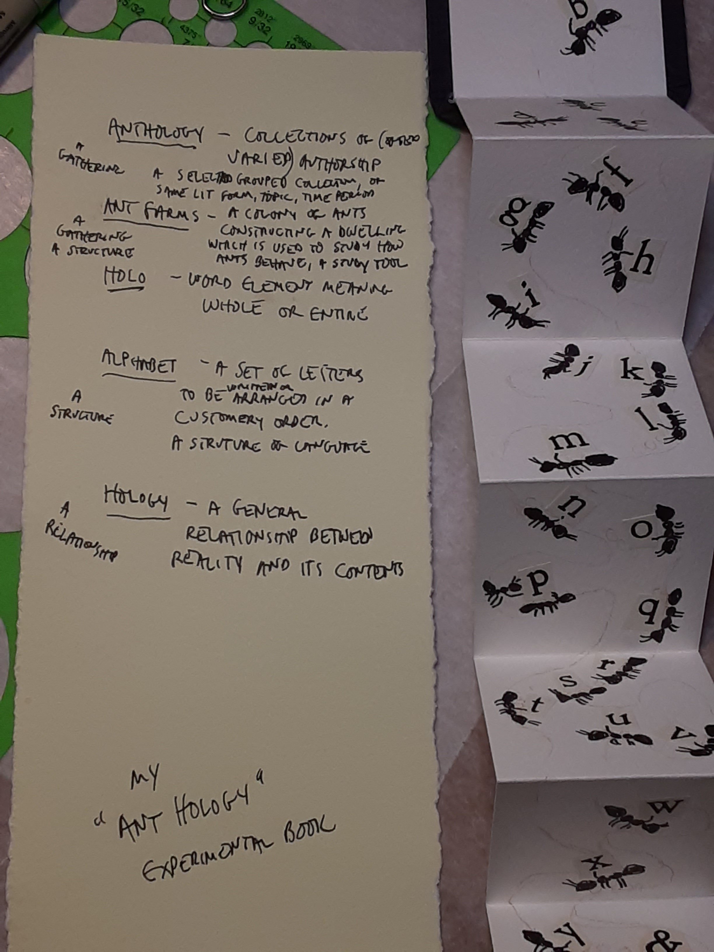 3. […] are making progress… in my new artist book that is! In my last post I was working on “Ant Hology” using a collage of letters, ink and gouache. It’s […]