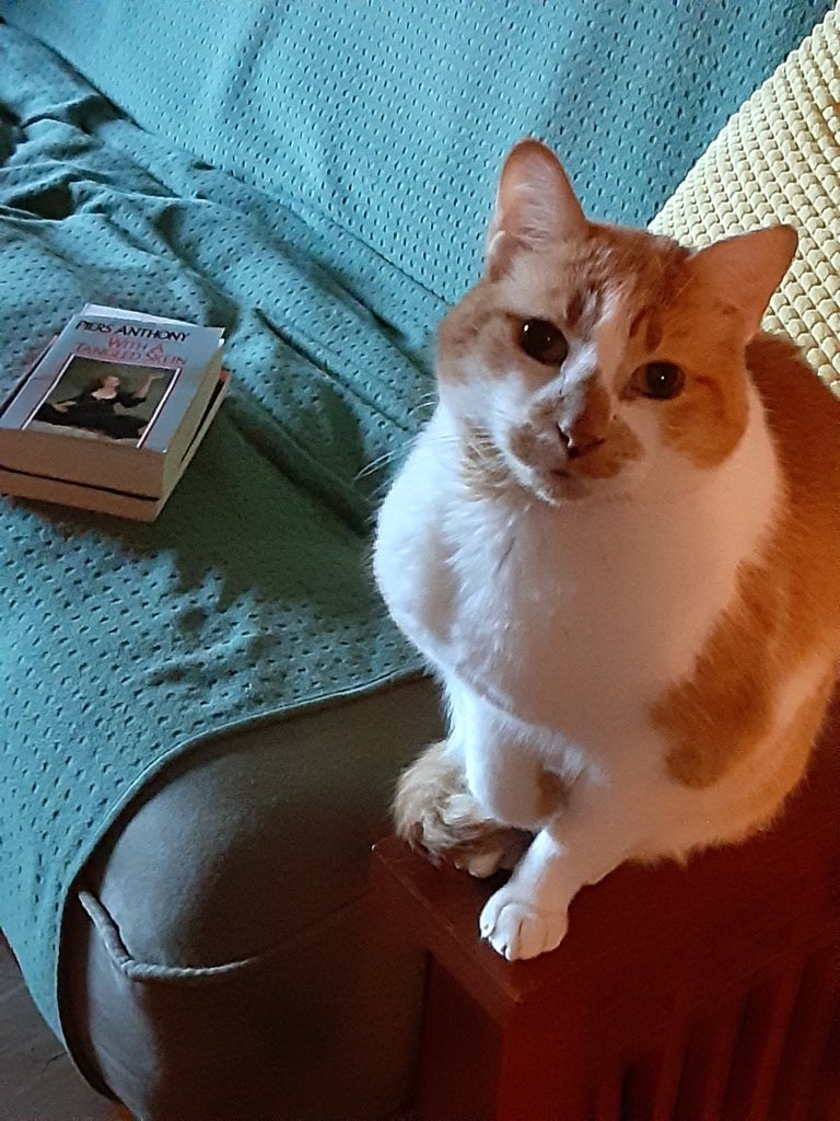And here’s the evening shift supervisor cat who makes sure we have whipped cream on our hot chocolate, maintain a regular reading program and still get to bed at a decent hour. Says the cat “Hey, you with the thumbs, quit poking about on the phone and get back to lap making and book reading.”