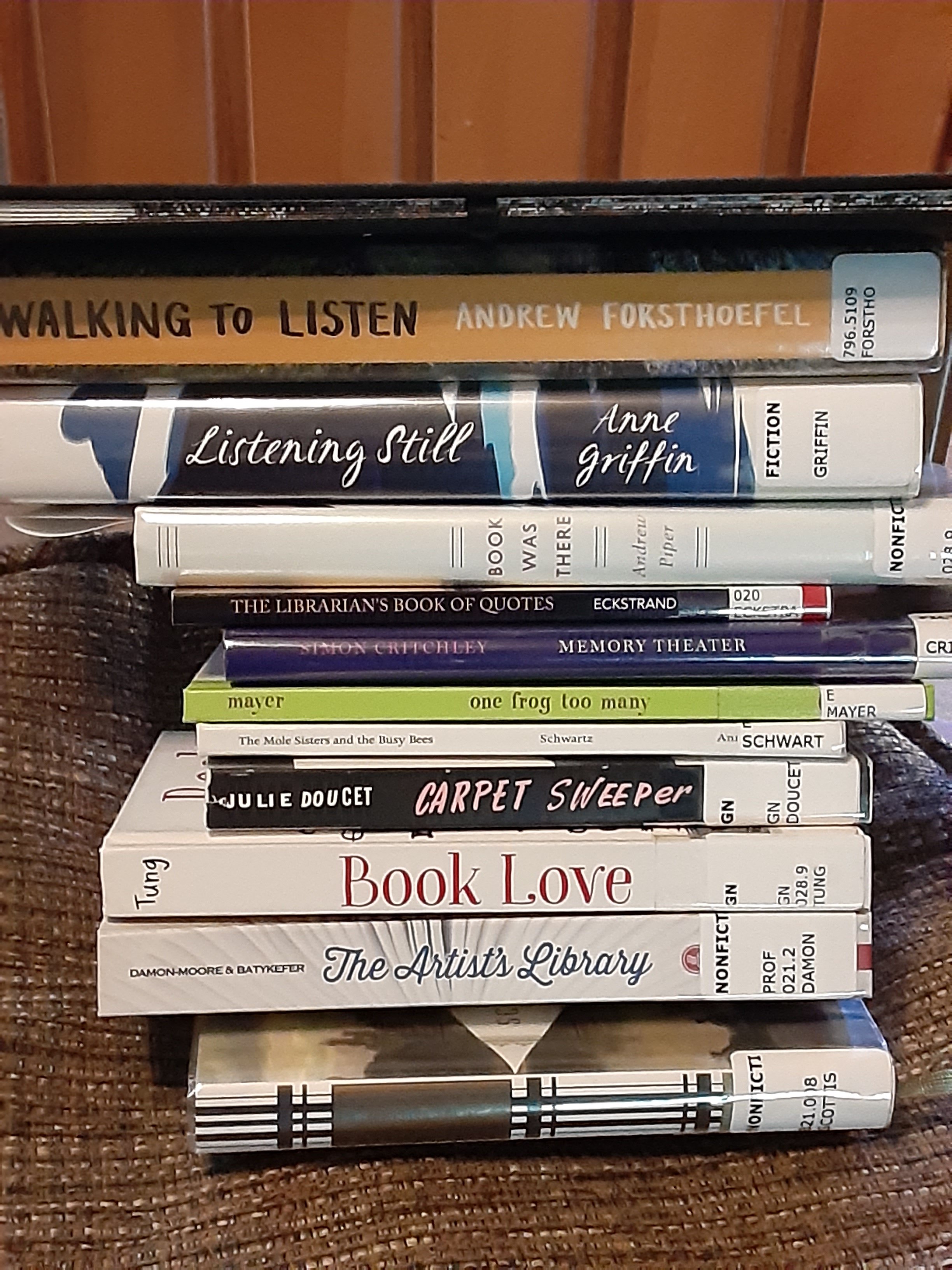 Libraries. Oh my goodness libraries are such gifts! Both the public libraries and private libraries you assemble yourself at home are treasures!! We recently visited our local library for the first time since the pandemic began in early 2020. Since the pandemic started we’ve primarily checked out the ebooks. I certainly count ebooks among the good things in life but printed books… oh, it was such a treat to get print books during our recent visit!