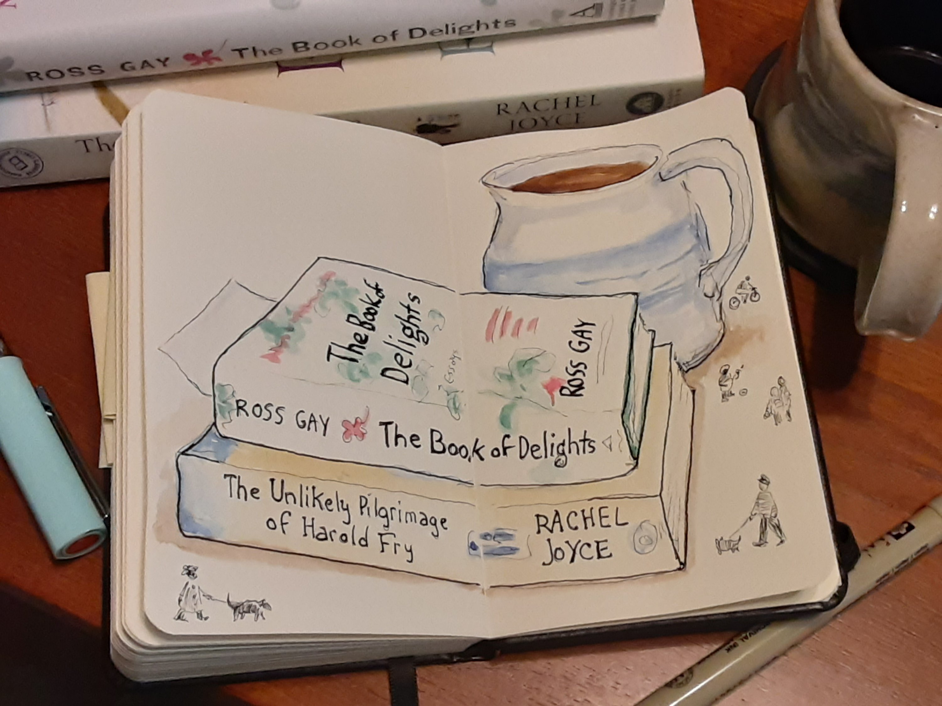Below is a sketchbook drawing I did of two books I’m currently enjoying reading! I’ve added both of these titles to my public books to cheer up by book list here.