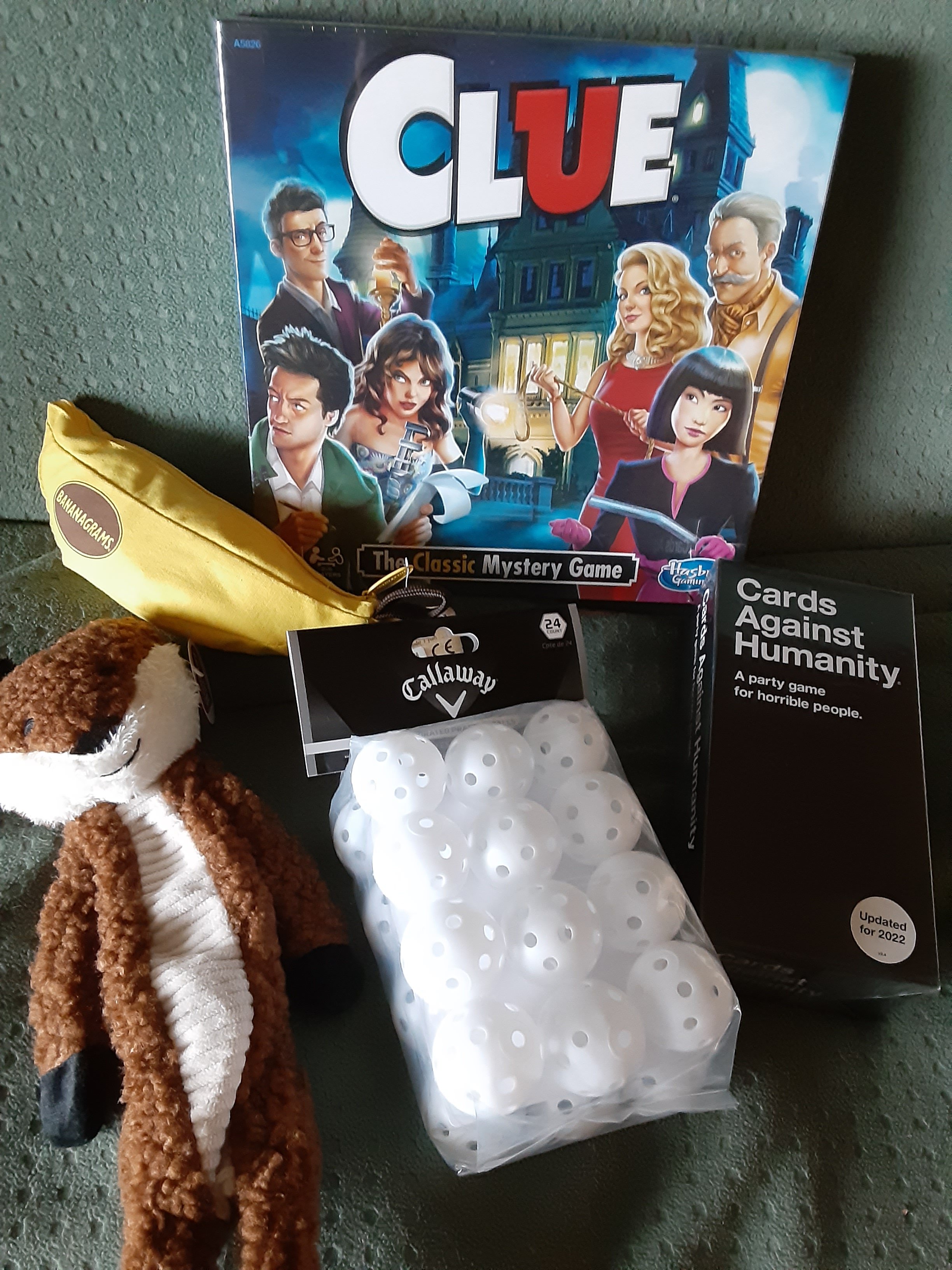 Games have come via mail too! Our cat loves the practice golf balls more than any other toy. We joke that he must have been a golf pro in a former life. So we got him a new package of balls. Which meant that, to be fair, we needed to get the dog a new toy too. Of course then we decided that the humans needed some new toys too…