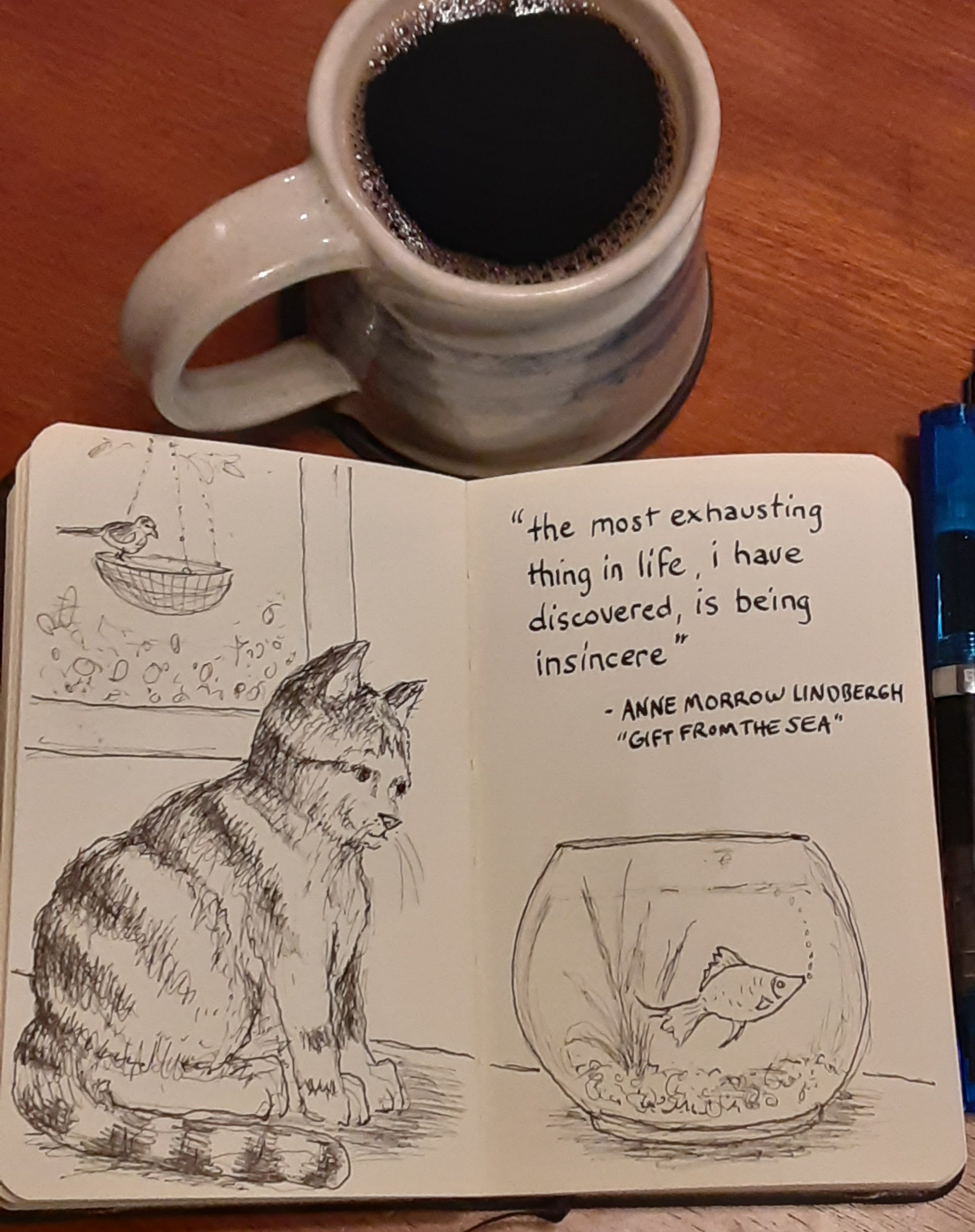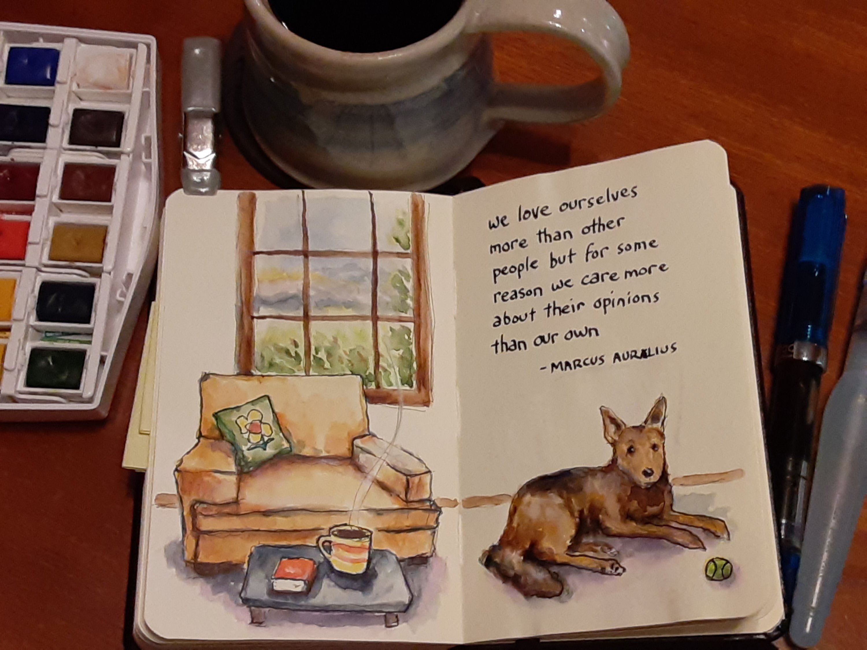I’ve also been enjoying doing sketchbook pages that include windows, landscapes, coffee cups and books… besides the animals…just to switch things up and relax. Subsequently that means new things are brewing over on my email newsletter. Please subscribe if you haven’t already because Jolabokaflod is coming and I can give my subscribers gifts there more easily than I can here… I won’t say more lest I spoil the surprise.