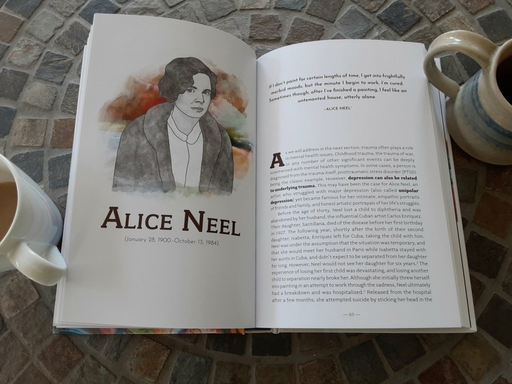 Okay, so I’m giving a really long-winded answer to your question because I thought your points were so interesting. But what you actually asked about was “art making as a way of coping and as a way of celebrating.” You pointed out Kusama and Neel, two great examples. And I’d argue that to some degree every artist in the book does this. I think it’s the aspect of art that most mental health experts understand as well … art as therapy, art as healing. Life is really hard and making art and even viewing art can be ways to make it less hard, to cope with it, to, as you say, even triumph. Neel’s portraits really celebrate the different people she encountered, something I loved seeing when I visited an exhibit of her work, and her own famous nude self-portrait from her later years really speaks “triumph” to me. She has said that she felt suicidal all her life and yet only had one attempt in her youth and had a decades-long art-making career.