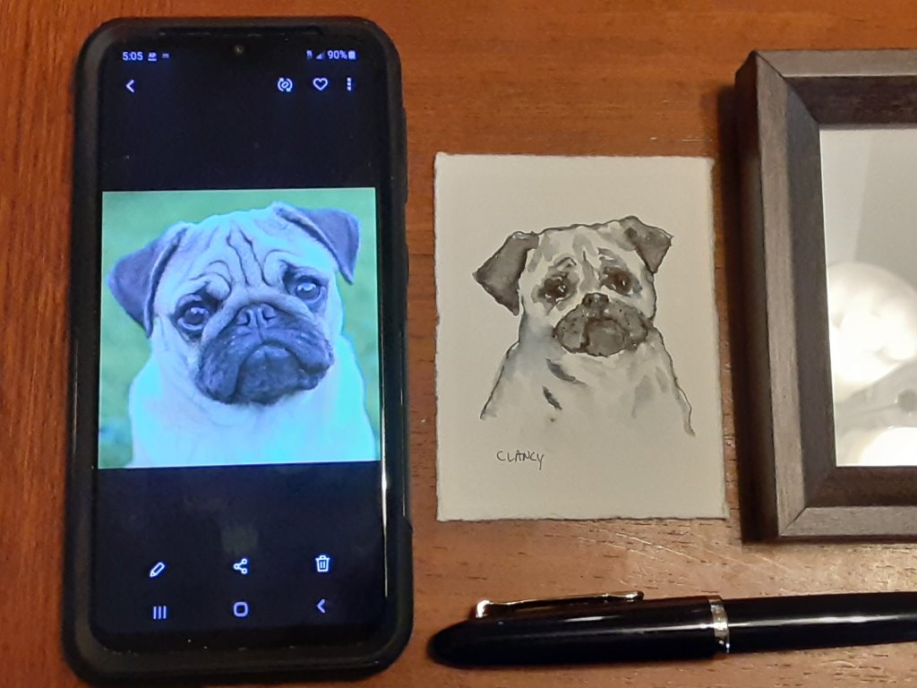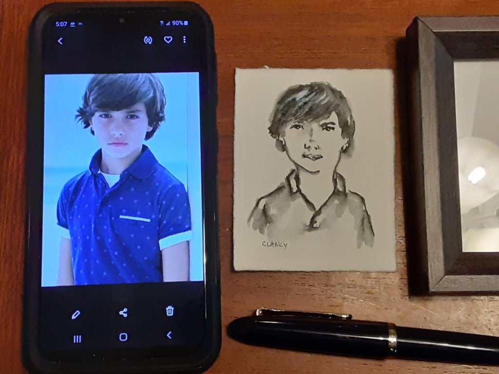 A friend sent me a photo of one of her dog and a kid so I could practice as well as send the bookstore an example of my work that they could share on their social media.