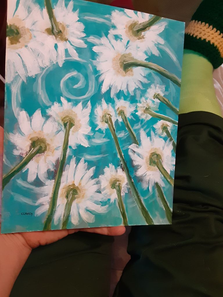 That I slipped on ice during winter when no daisies were in bloom doesn’t stop me from seeing flowers. 😁🤣