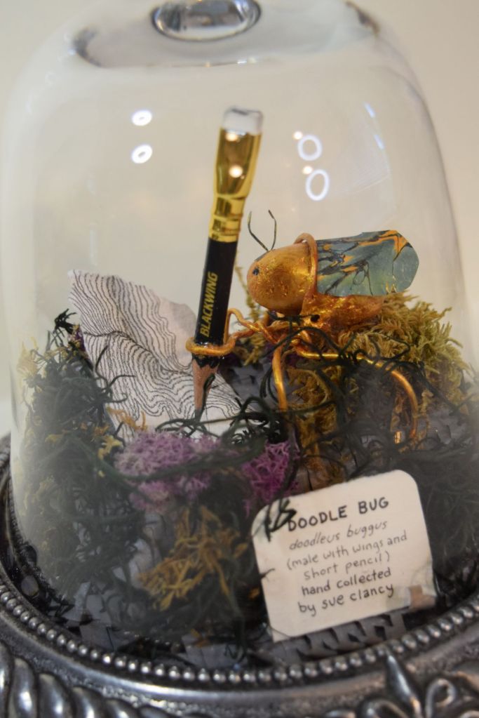 2. The book is reminiscent of a scientist’s field guide when seen in combination with the bell dome containing the doodlebug specimen. It is fun to think about the possibility of encountering doodlebugs in the wild.