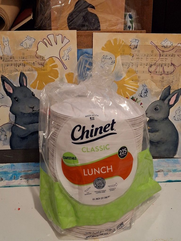 Yesterday I bought a big package of paper plates that I’ll use as painting palettes. There are more than 200 plates in this package. I plan to keep going.