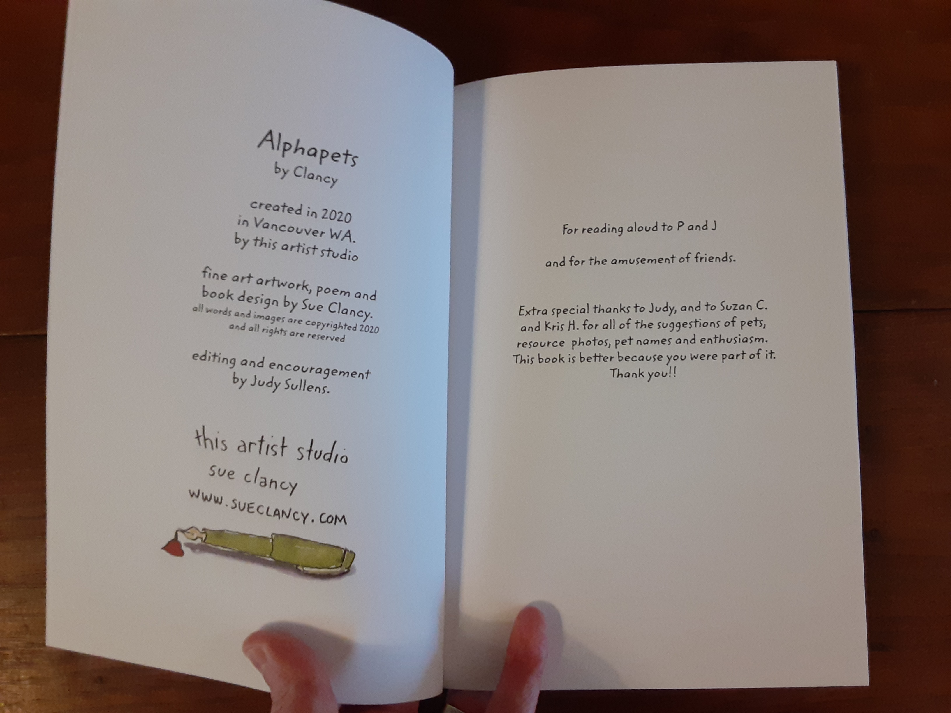 This artist book for children is an abecedarian poem written and illustrated by Clancy