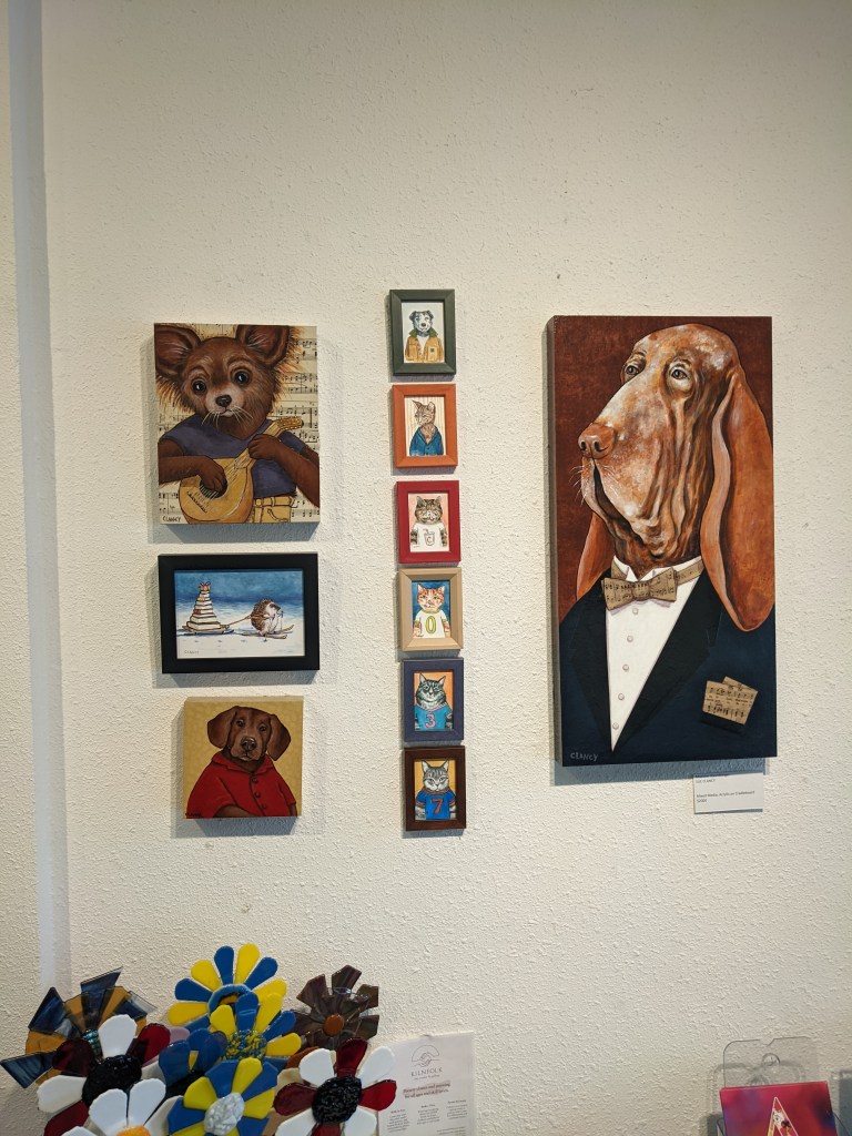 Here’s a look at the exhibit installation at the Aurora Gallery. (There’s a fun “where’s Waldo” effect of being able to find the matches between the art, books and cards). A short look at the exhibit via an Instagram Reel is here: https://www.instagram.com/reel/ChuyWWoJPzP/?igshid=YmMyMTA2M2Y=