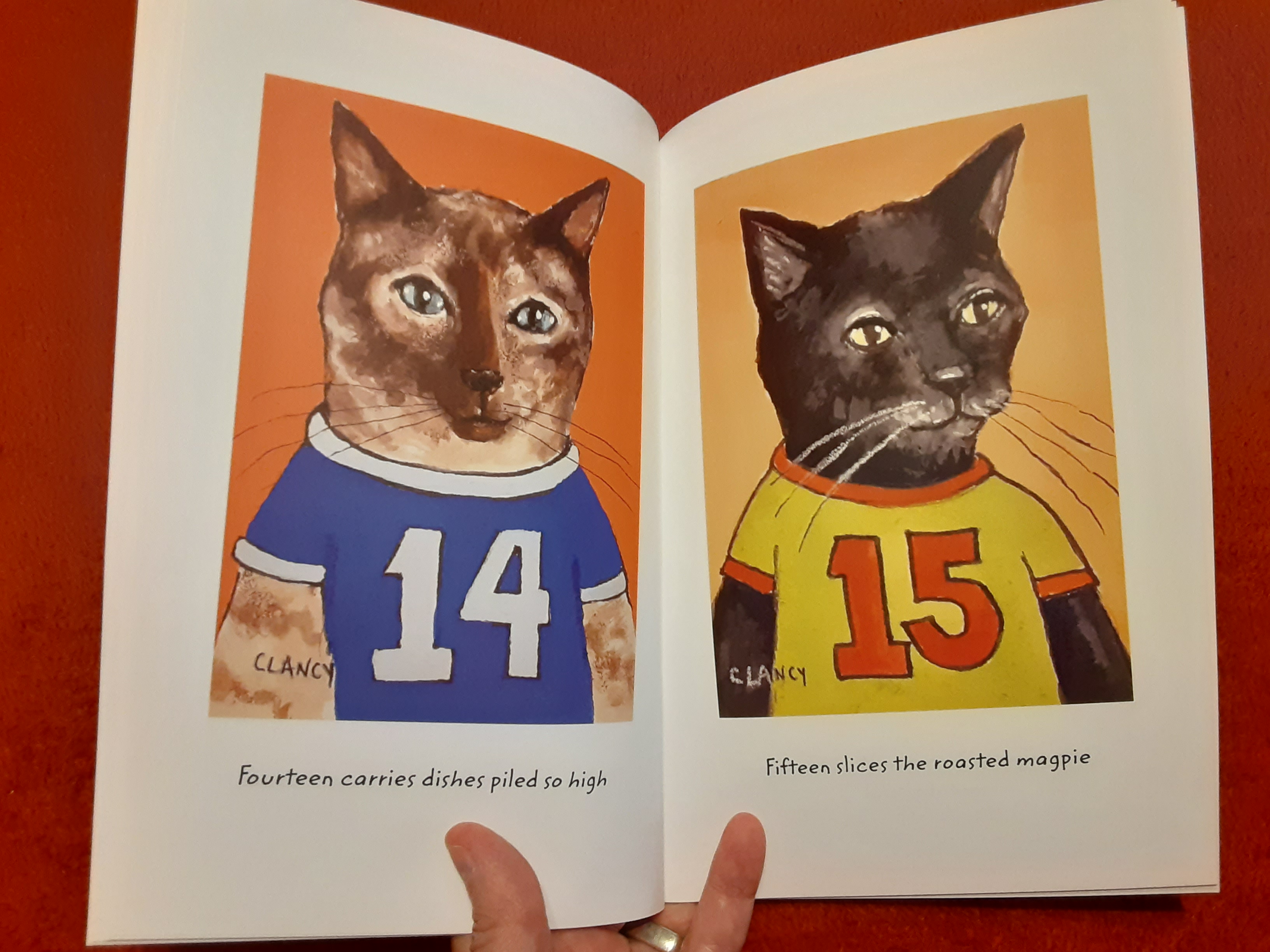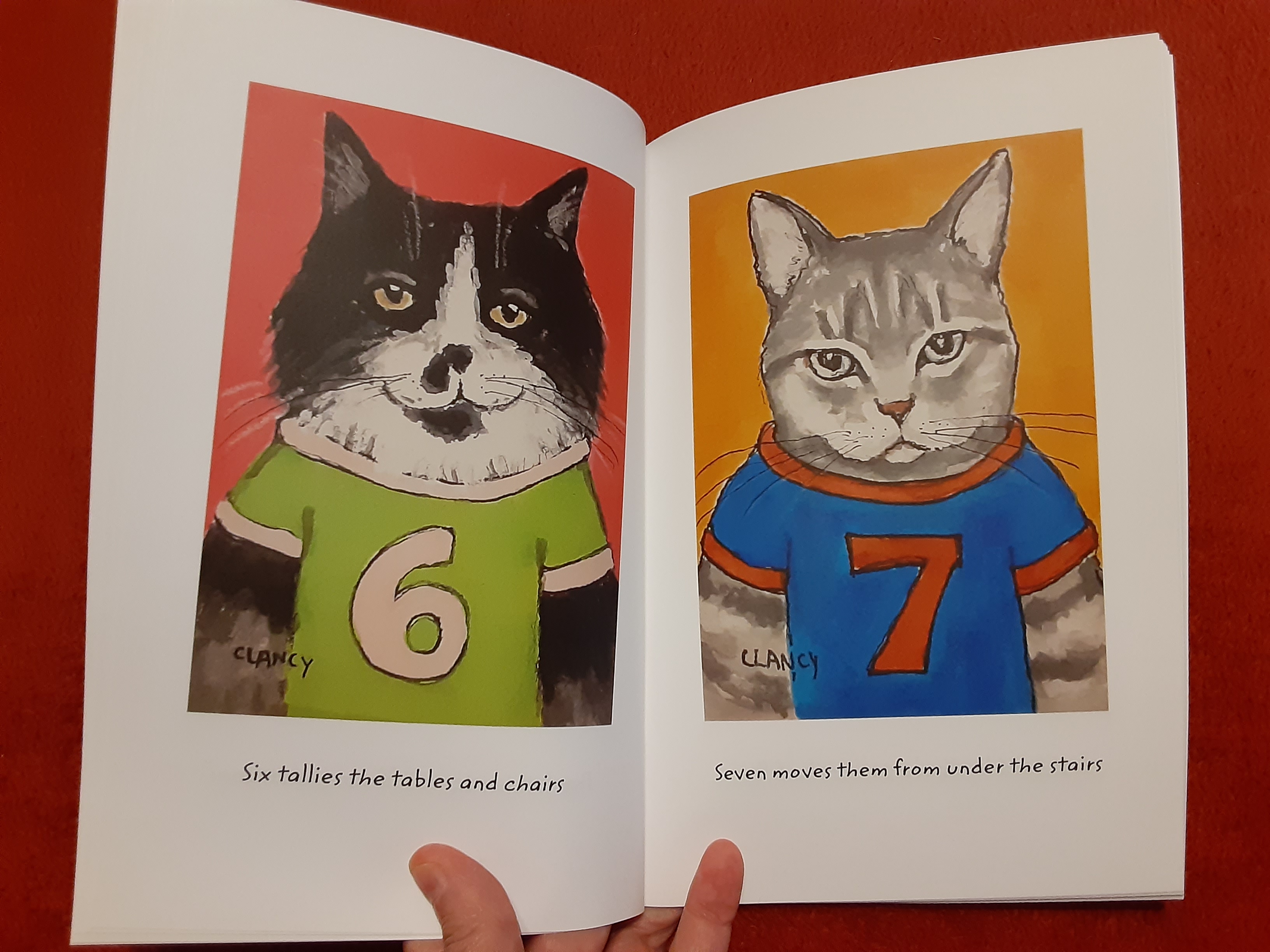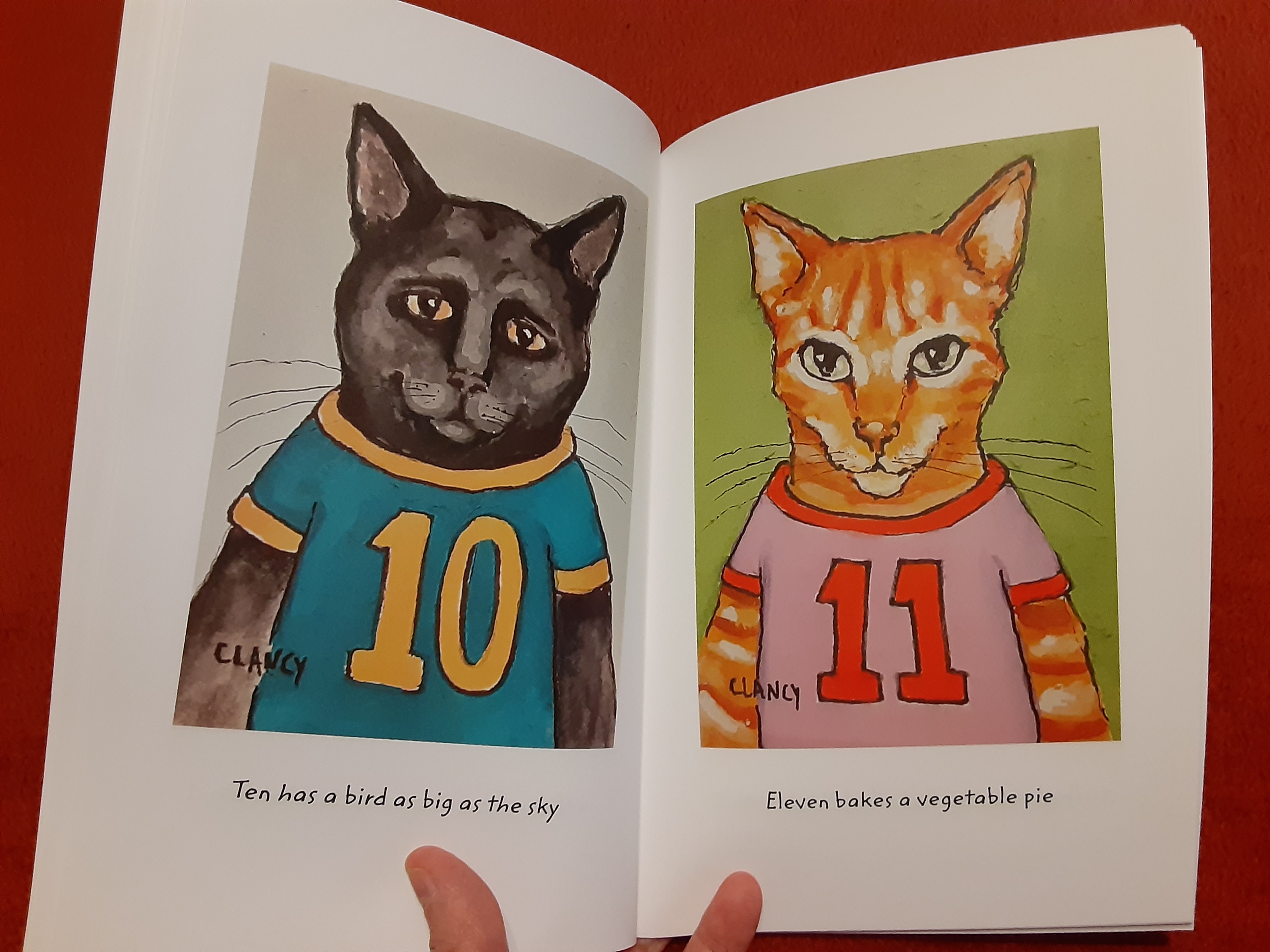 Specifically it’s an illustrated poem about cats and numbers โ a playful summing up of what happens when everyone brings something pleasant to the table. Every contribution counts!